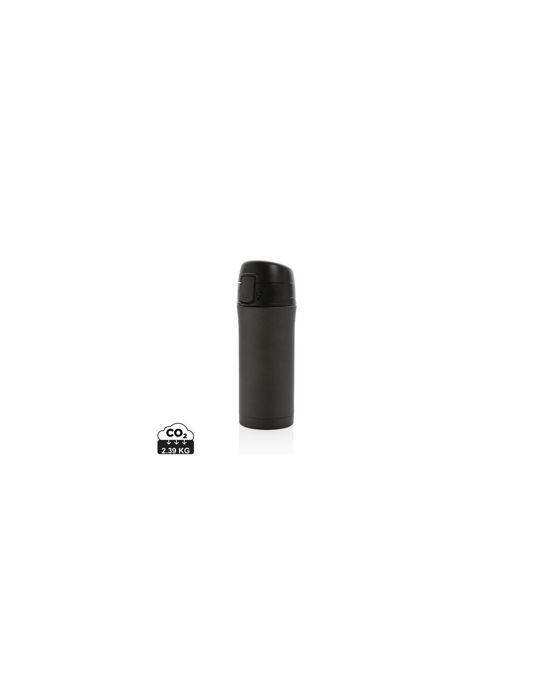 Una hermosa versión metálica de esta gran taza al vacío de acero inoxidable de doble pared que mantiene tu bebida caliente hasta 5 horas o fría hasta 15 horas. La tapa se puede cerrar con llave y por lo tanto evita cualquier riesgo de fugas o derrames. La tapa es fácil de mantener limpia para una higiene óptima y se puede lavar en el lavavajillas. El diseño único de la taza te permite beber de manera cómoda y segura con solo una mano. El tamaño de la taza es adecuado para colocar en cualquier portavasos de coche. Capacidad: 300 ml. Material : Acero inoxidable, PP Recycled Content Percent : 0 Libre de parafinas cloradas de cadena corta y media., Conforme directiva Phtalate content, Conforme legislación alimentos Alemania, Sin materiales Bisphenol A Packaging : Caja de regalo All print codes : Pad Print Drinkware,Digital round 360-1,SilkScreen Round,Laser Engraving 3 - Print code default : Tampografía - parte frontal en medio - 25 x 80 mm - max color : 5 Social Audits : SMETA Total CO2 emissions : 2,39.