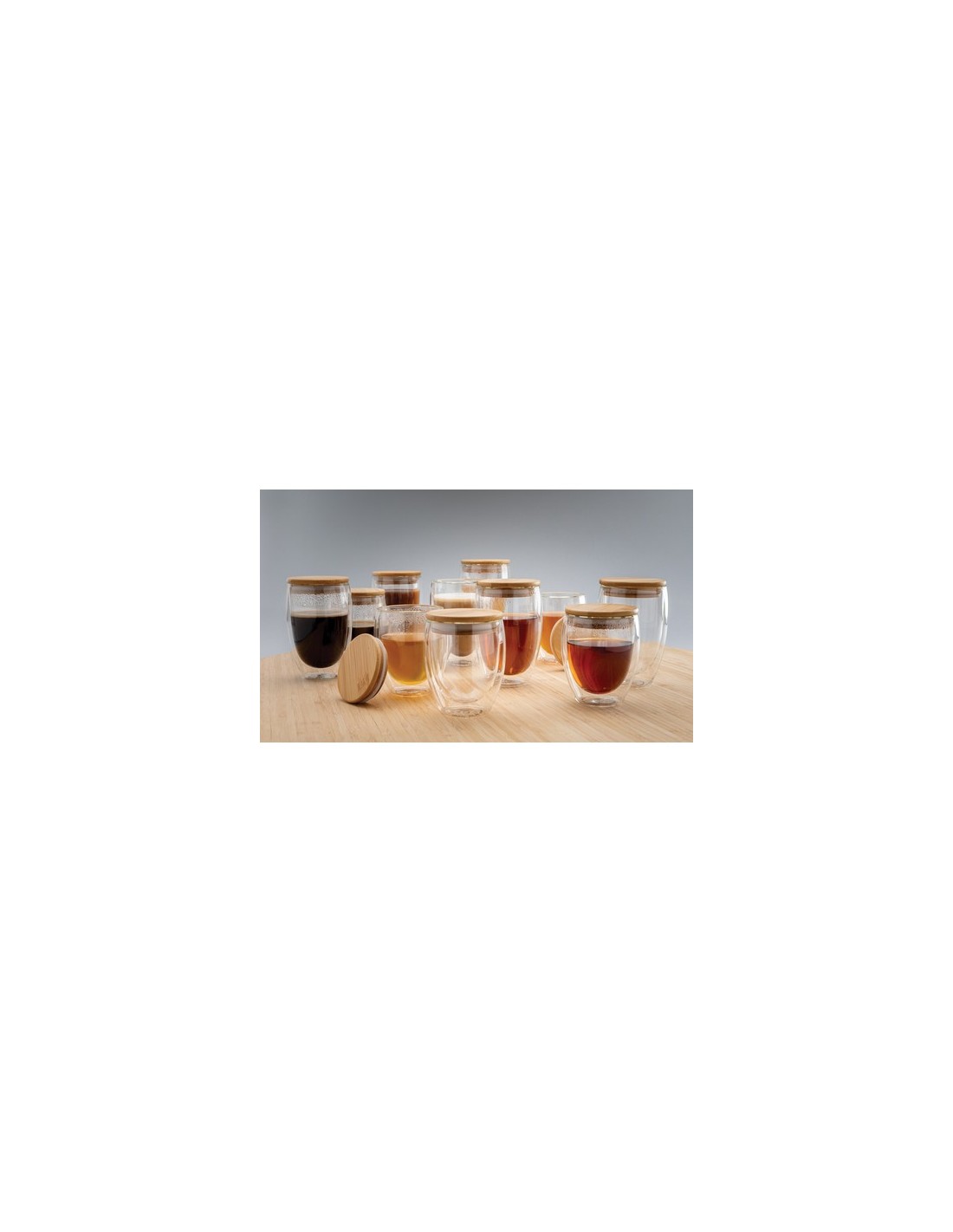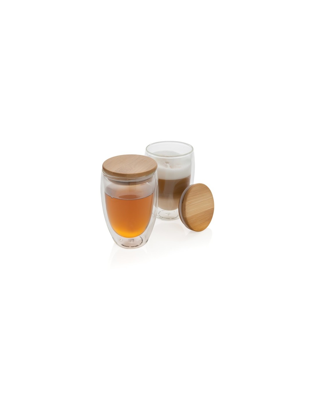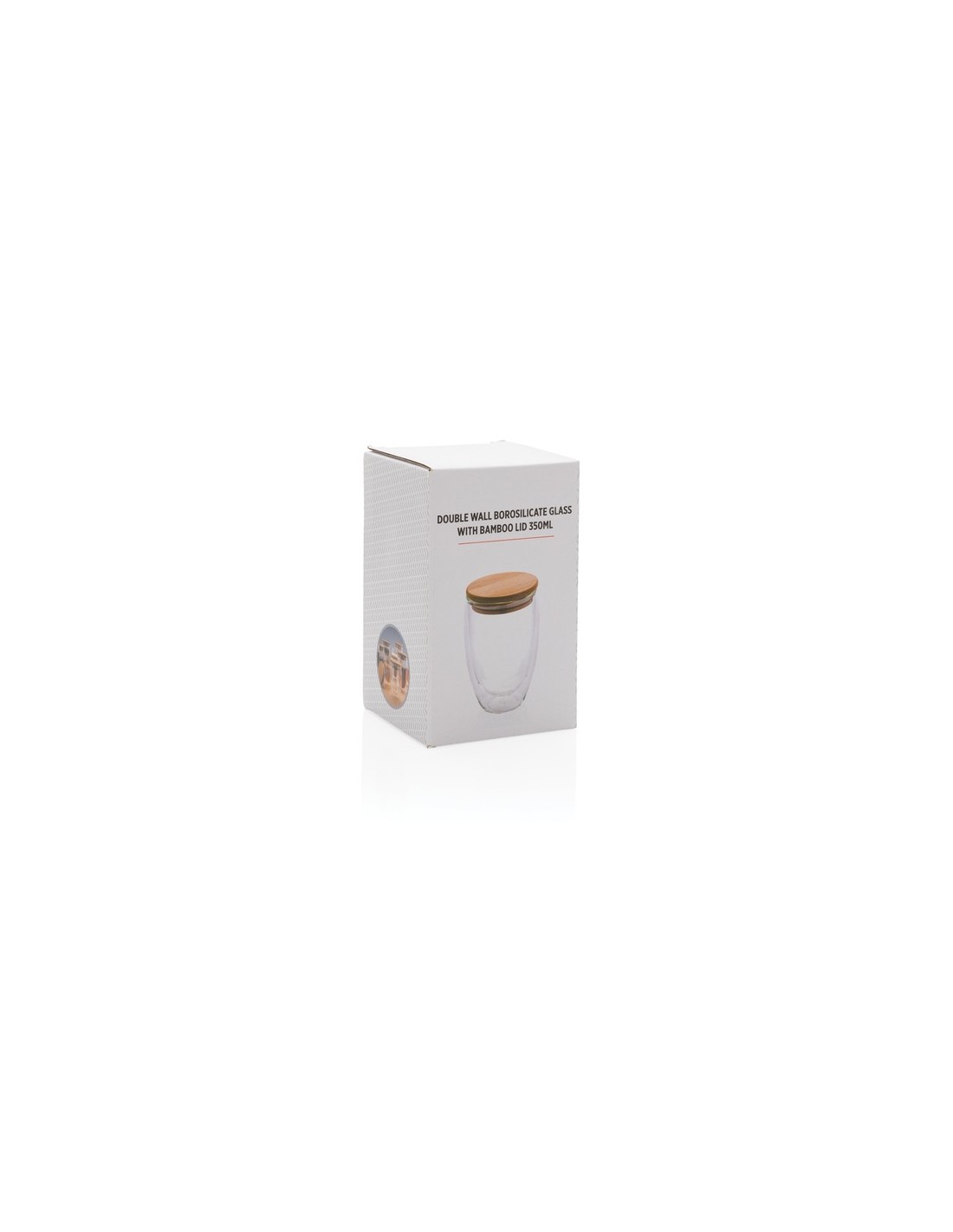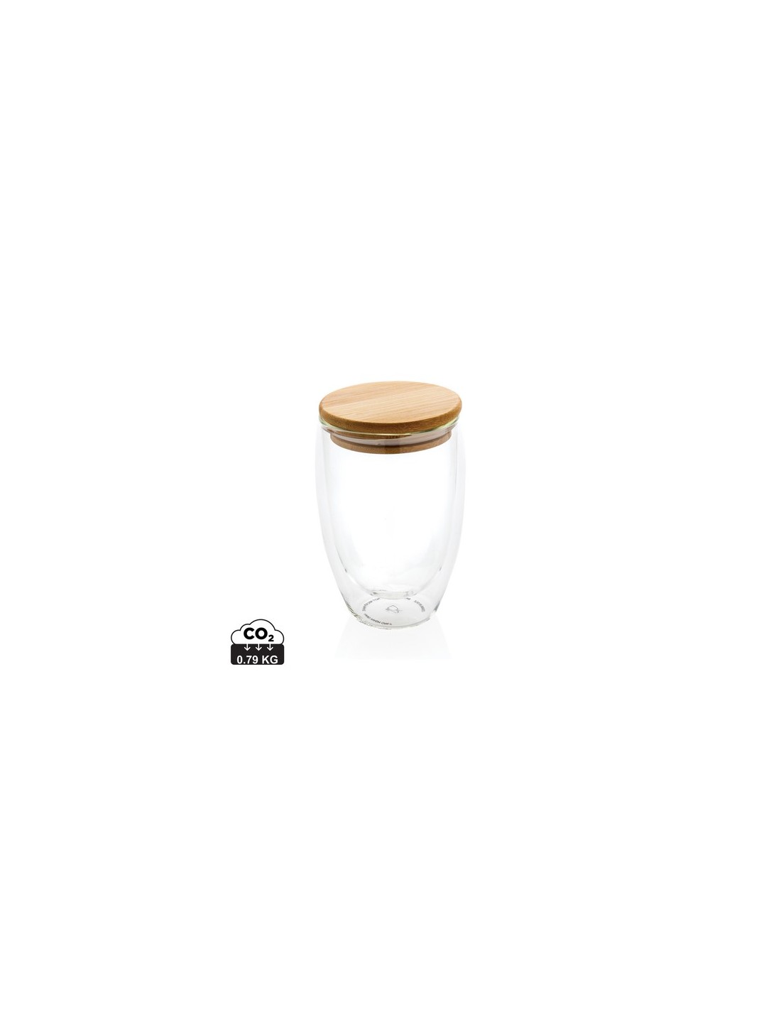Este vidrio de borosilicato de doble pared tiene un elegante diseño de 2 capas que muestra todas tus bebidas favoritas! No importa lo que sirvas, capuchino, té o café con leche caliente mientras tu mano se mantiene fresca. Incluye una tapa de bambú. Se recomienda lavar a mano la tapa de vidrio y bambú. Capacidad 350ml. Sin BPA. Material : Vidrio, Bambú Recycled Content Percent : 0 Conforme directiva Phtalate content, Conforme legislación alimentos Alemania, Sin materiales Bisphenol A, Libre de parafinas cloradas de cadena corta y media. Packaging : Caja de regalo All print codes : Pad Print Drinkware,CO2 Engraving 3 - Print code default : Tampografía - parte superior - 50 x 50 mm - max color : 5 Social Audits : BSCI Total CO2 emissions : 0,79.