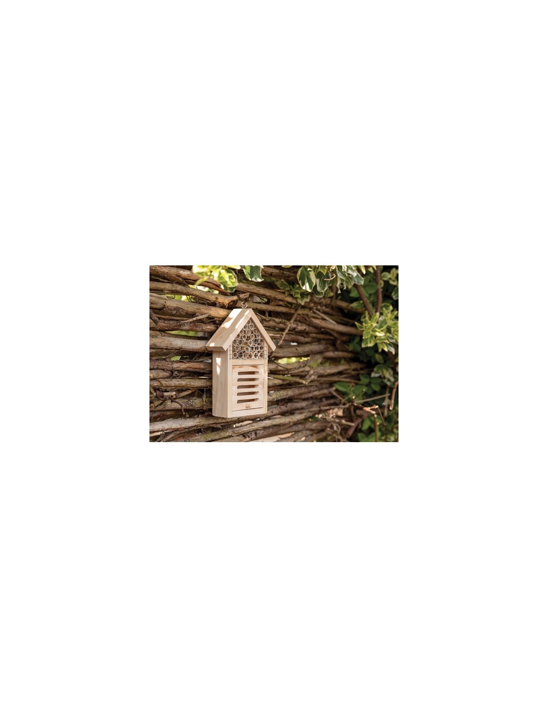 Los insectos son indispensables en la naturaleza! Al colocar este hotel de insectos, los ayudas a hacer su útil trabajo desde allí. Este pequeño hotel de insectos albergará abejas y otros pequeños insectos. El hotel de insectos debe ubicarse en un lugar soleado, protegido del viento y la lluvia, al menos a 50 cm del fondo. El frente con la abertura debe colocarse en el lado soleado. En la parte trasera hay un orificio para colgarlo fácilmente. Hecho de madera. Material : Madera Recycled Content Percent : 0 Conforme directiva Cadmio 91/338/EC, Conforme directiva Formaldahyde EN 14184-1, Conforme contenido de plomo U.S, Conforme directiva PCP content 1999/51/EC, Reglamento (UE) 2023/1115 Reglamento de la UE contra la deforestación Packaging : Caja de regalo All print codes : CO2 Engraving 2,Pad Print - Print code default : Grabado CO2 - parte alta e izquierda del artículo - 30 x 65 mm - max color : 1 Social Audits : BSCI Total CO2 emissions : 0,39.