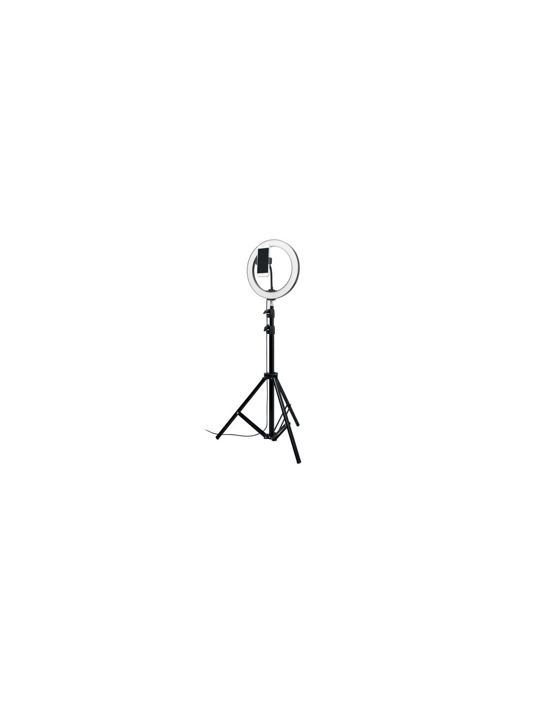 Anillo de luz LED de 26 cm selfie con trípode (160 cm) y soporte para teléfono. Ideal para tik-tok®, directos en streaming, fotografías y compartirlas. Incluye obturador con cable. Luz blanca cálida (120 LED) con 10 niveles de brillo. El trípode es extensible hasta una altura máxima de 173 cm.