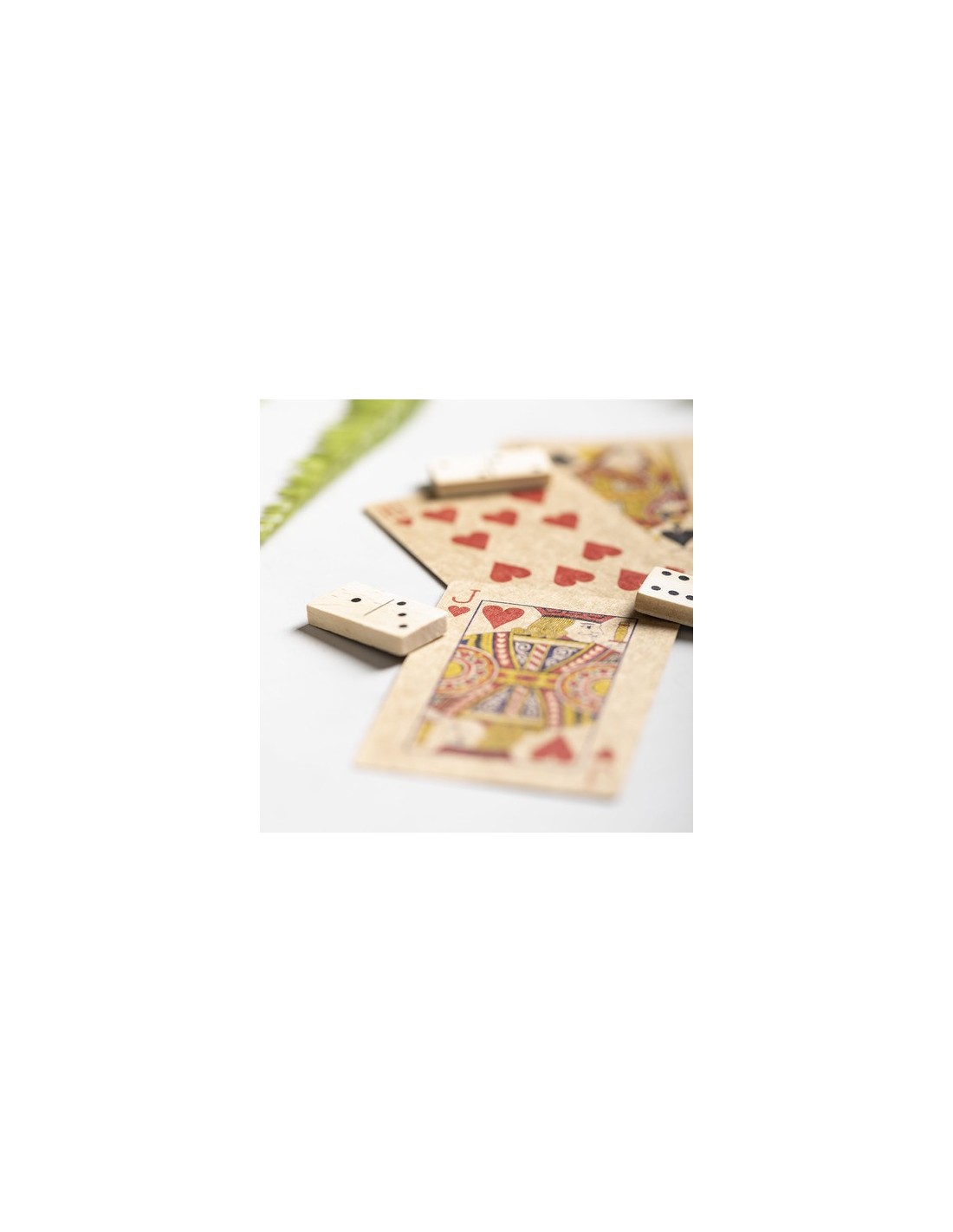 Set de juegos de línea nature. Incluye baraja de naipes francesa en cartón reciclado y dominó en madera. Set presentado en estuche de madera con compartimentos individuales para cada juego y tapa con apertura deslizante. 2 Juegos Composition : Madera.