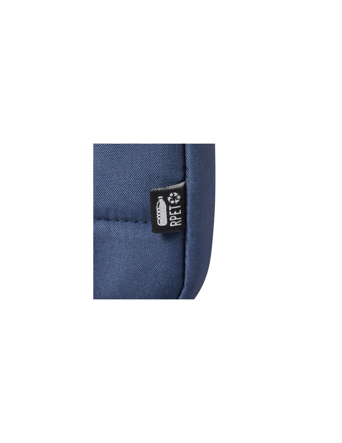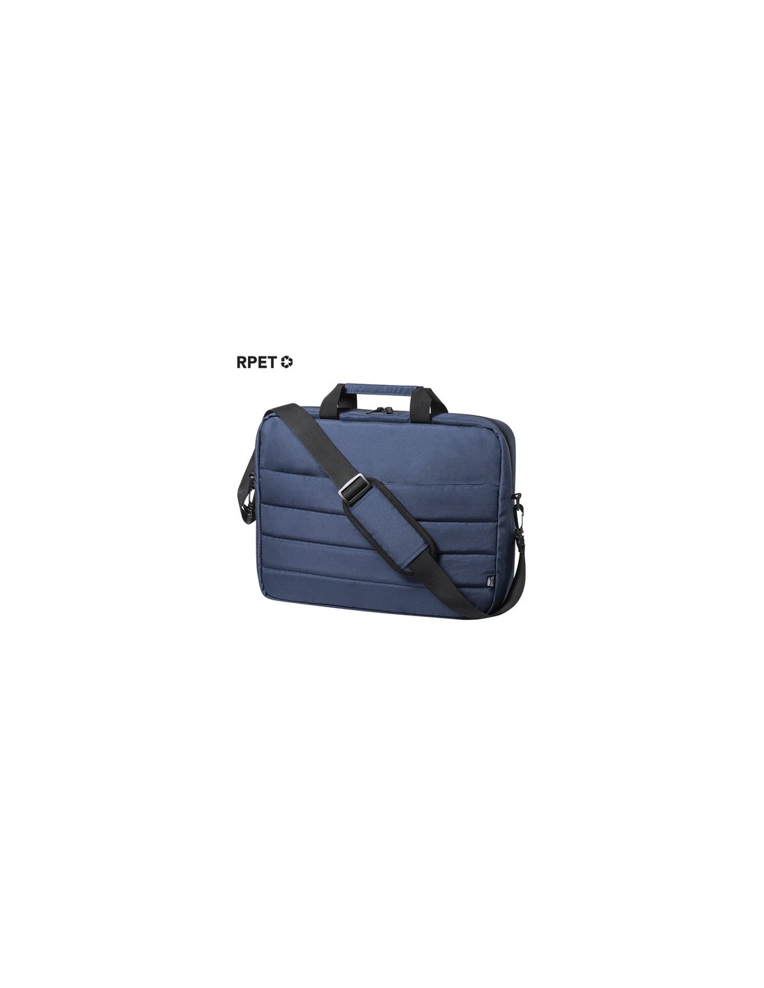 Maletín de línea nature con diseño urbano y acolchado total. Fabricado en resistente RPET 300D elaborado a partir de plástico reciclado, para así fomentar la reutilización de residuos plásticos y contribuir a la sostenibilidad del planeta. Accesorio para ajuste en trolley, con compartimento interior acolchado para ordenador portátil de hasta 15 pulgadas. Bolsillo principal con cierre de cremallera y tirador metálico. Cómodas asas de transporte reforzadas y cinta bandolera ajustable, con refuerzo acolchado para hombro y cierres giratorios de mosquetón. Distintivo RPET en etiqueta. Acolchado. Bolsillo Acolchado para Portátil Composition : Poliéster 300D RPET.