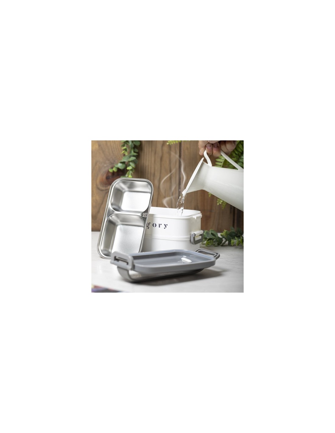 Fiambrera térmica de 850ml de capacidad. Fabricada en acero inox y PP, libre de BPA. Incluye 2 compartimentos independientes con bandejas en acero inox y cierre hermético, de 500ml y 350ml de capacidad respectivamente. Ideal para una correcta conservación del calor, con posibilidad de prolongación añadiendo agua caliente. 2 Compartimentos 350 y 500 ml Composition : PP/ Acero Inox.