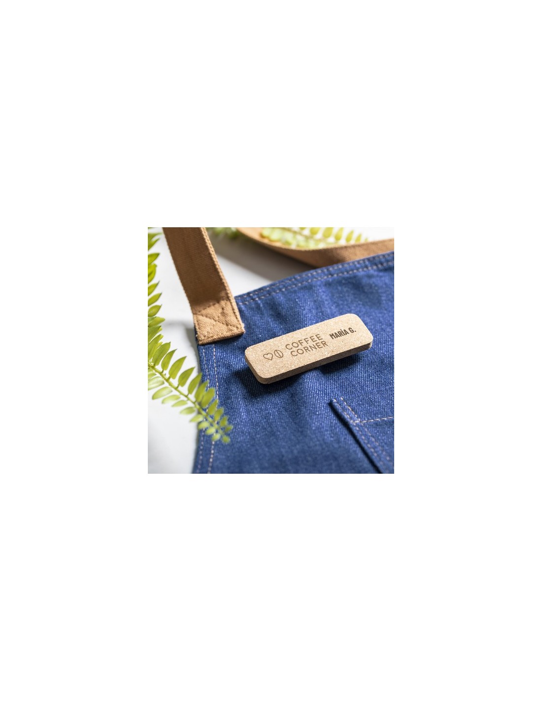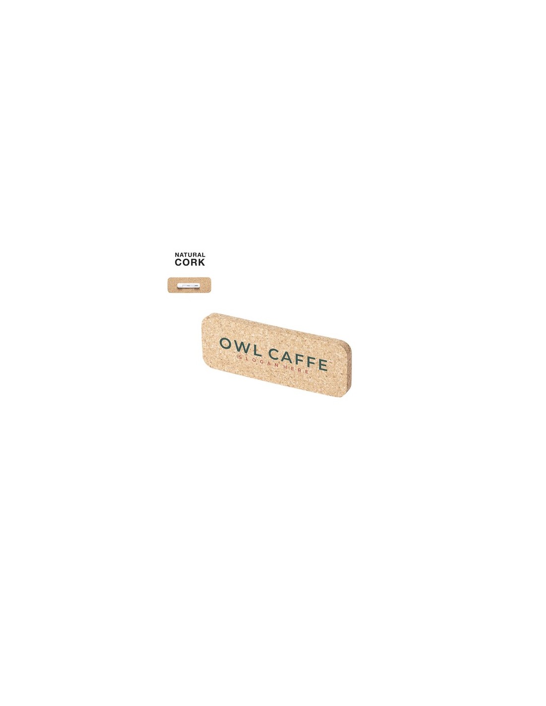 Identificador de línea nature fabricado en corcho natural, para así fomentar la utilización de materias primas naturales y reducir las emisiones contaminantes. Fijación de seguridad con imperdible en la parte trasera. Composition : Corcho.