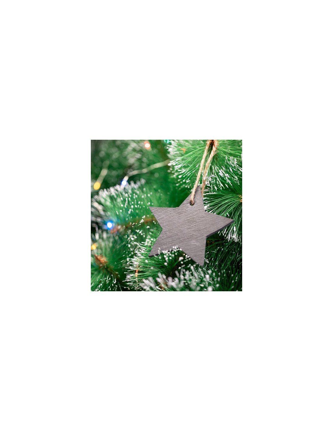 Adorno navideño en pizarra, con lacito para colgar y en elegantes diseños árbol de navidad y estrella. Composition : Pizarra.