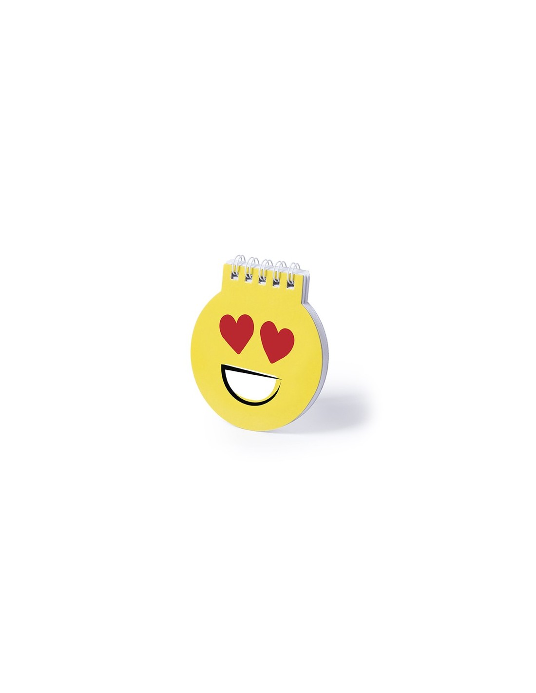 Libreta de divertidos diseños emoji en llamativo color amarillo. De anillas blancas, con tapas de cartón rígidas de suave acabado brillante y 40 hojas lisas. Portada Rígida. 40 Hojas