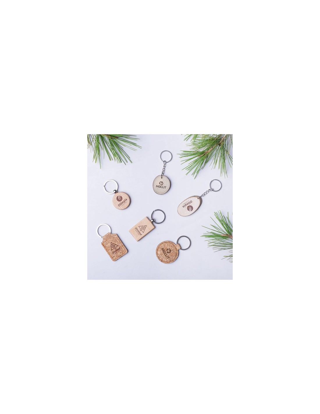 Elegante llavero de línea nature fabricado en corcho natural. Con amplia superficie de marcaje y disponible en diseños rectangular y redondo. Composition : Corcho.