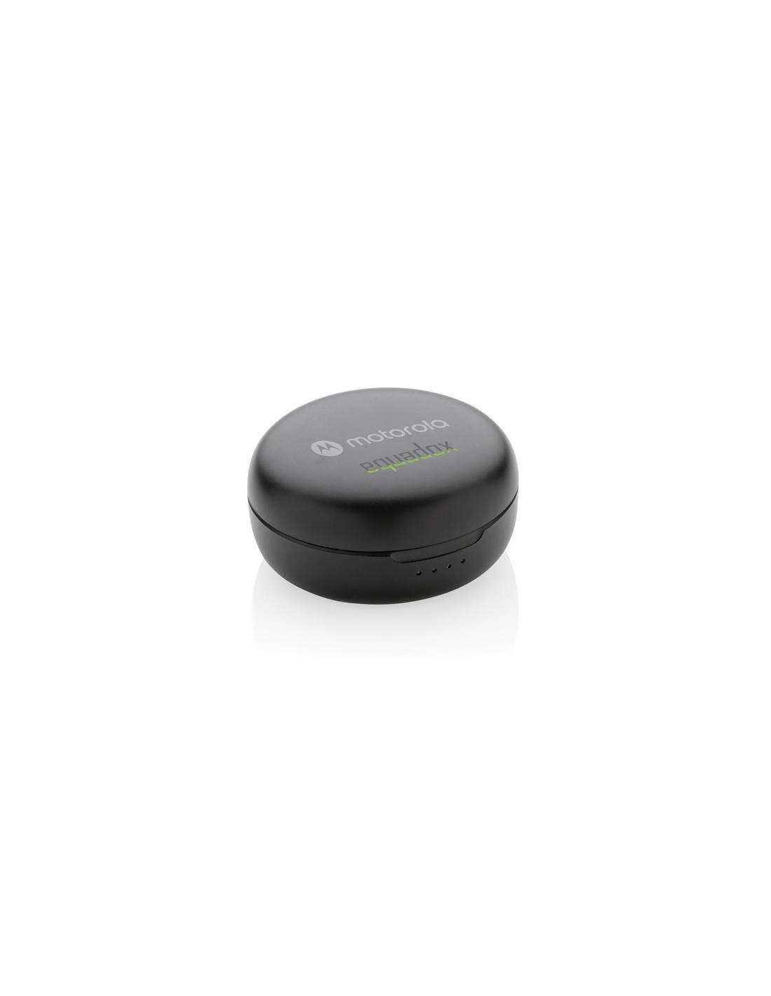 Estos auriculares de diseño compacto Motorola BT 2.0 IPX5 vienen con un sonido y una duración de batería excepcionales. Con control táctil. Cuentan con 6 horas de reproducción y otras 12 horas en el elegante estuche de carga. Calidad de sonido superior y llamadas en manos libres.La certificación IPX5 resistente al agua y al sudor también te permite moverte con libertad y comodidad sin la preocupación de dañarlo. Con asistente de voz inteligente; Alexa incorporada, Siri® y Google Assistant ™ Material : ABS Recycled Content Percent : 0 Conforme directiva Battery transportation safety UN38.3, Conforme PAHS content in Reach & ZEK 01-4-08, Hoja de datos de seguridad del material disponible, Conforme directiva de sustancias peligrosas 2011/65/EC & 2015/863, Conforme directiva equipamientos Radio y Telecomunicaciones 2014/53/EU, Certificado para transporte aéreo, Conforme directiva seguridad baterias Alcalinas EN62133, Conforme directiva Phtalate content, Libre de parafinas cloradas de cadena corta y media. WEEE Battery : 1 Li-poli - 8,5 g. Packaging : Caja de regalo All print codes : Pad Print - Print code default : Tampografía - parte superior - 30 x 6 mm - max color : 5 Total CO2 emissions : 0,62.