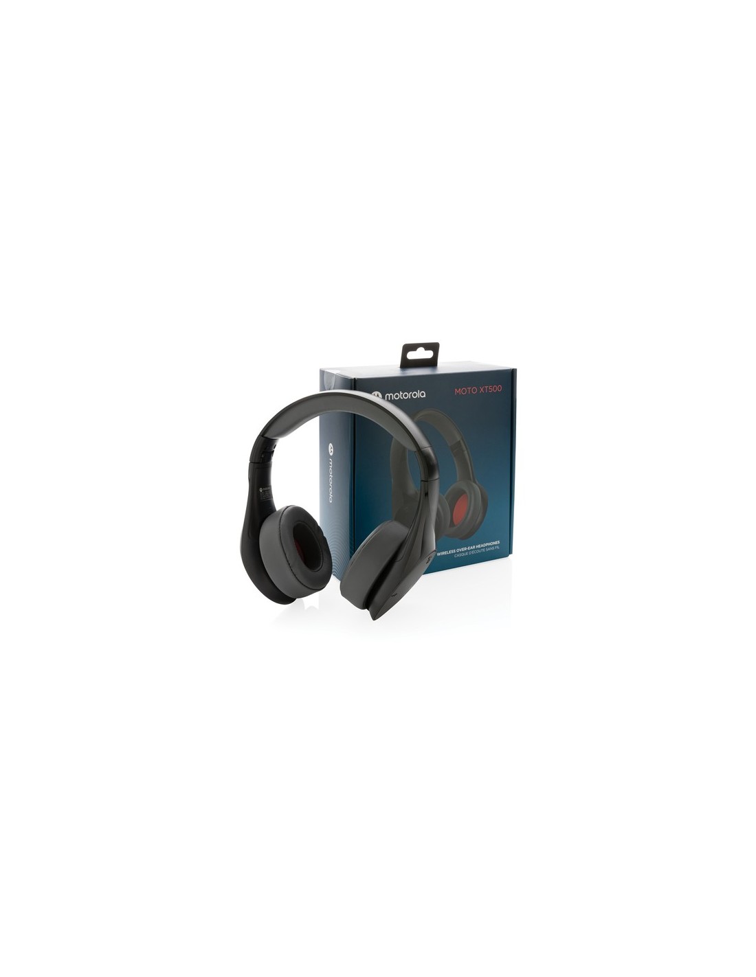 Motorola XT500 ofrece rendimiento con calidad de estudio y libertad inalámbrica. Estos auriculares están equipados con tecnología BT 4.1, lo que te permite escuchar música o podcasts sin cables. Los potentes controladores de 40 mm y el aislamiento de ruido brindan un sonido excelente, mientras que las 10 horas de tiempo de reproducción y los auriculares plegables te ayudan a pasar el día. Además, un micrófono incorporado te permite recibir y hacer llamadas con manos libres, lo que hace que el XT500 sea perfecto para usar durante todo el día. Ligero y plegable para viajar. Material : ABS Recycled Content Percent : 0 Conforme directiva seguridad baterias Alcalinas EN62133, Libre de parafinas cloradas de cadena corta y media., Certificado para transporte aéreo, Conforme directiva Battery transportation safety UN38.3, Conforme directiva Phtalate content, Conforme PAHS content in Reach & ZEK 01-4-08, Hoja de datos de seguridad del material disponible, Conforme directiva de sustancias peligrosas 2011/65/EC & 2015/863, Conforme directiva equipamientos Radio y Telecomunicaciones 2014/53/EU WEEE Battery : 1 Li-poli - 15 g. Packaging : Caja de regalo All print codes : Pad Print - Print code default : Tampografía - lado derecho del artículo - 15 x 15 mm - max color : 5 Total CO2 emissions : 2,2.
