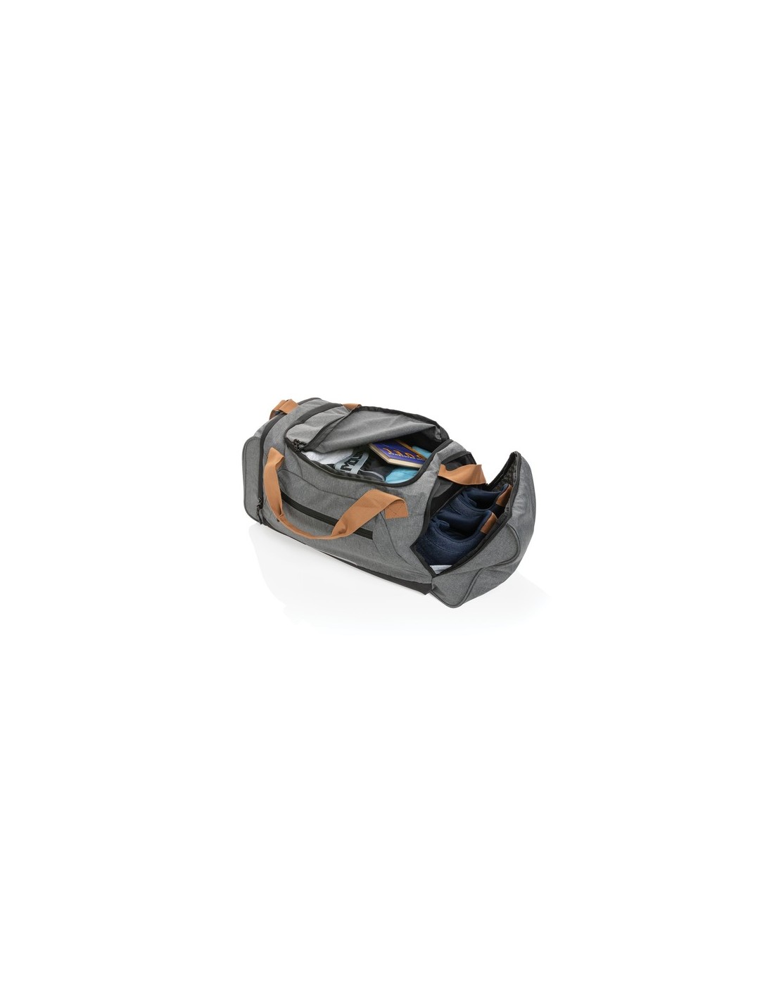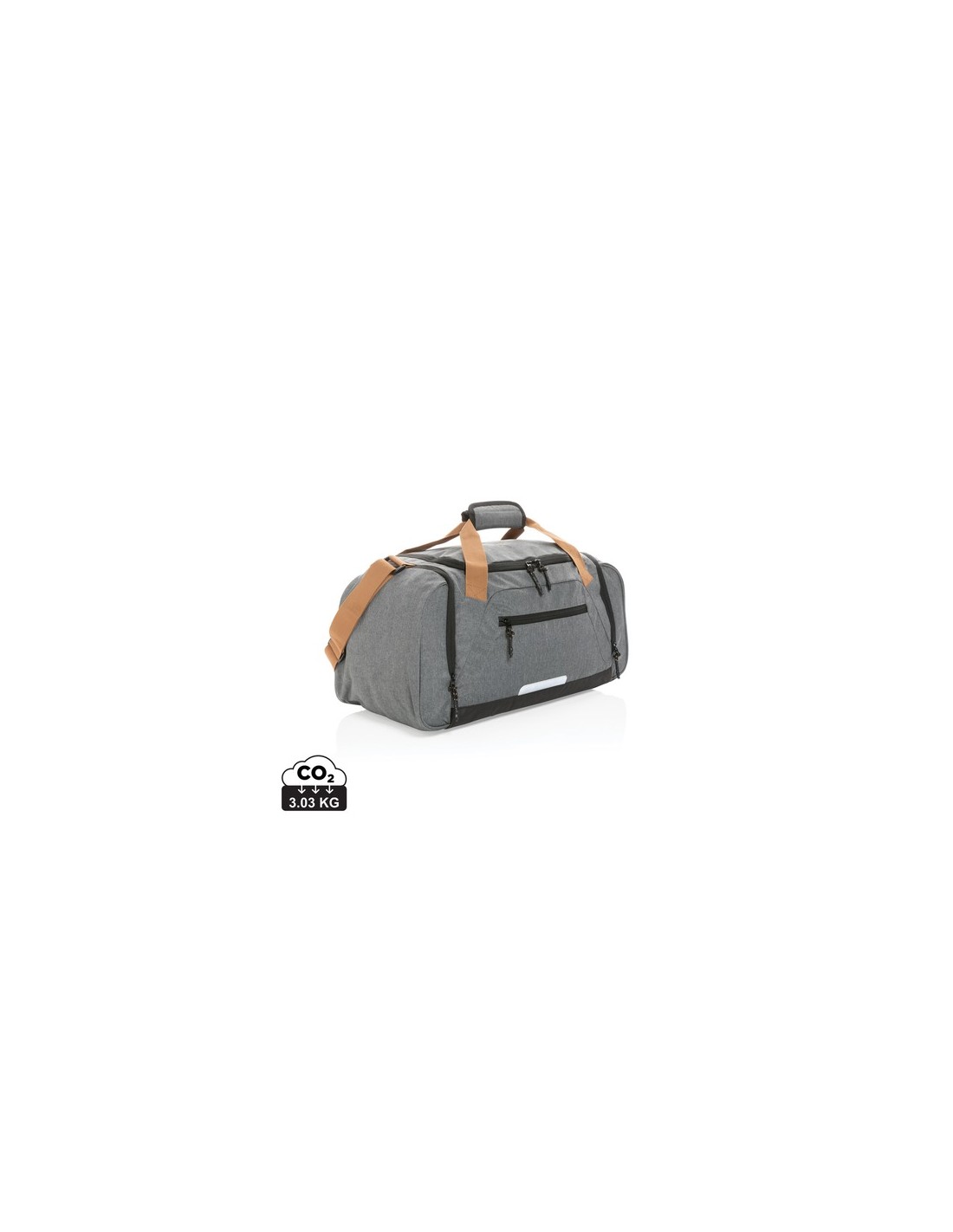 La bolsa Urban outdoor Impact AWARE ™ tiene espacio más que suficiente para una escapada de fin de semana! También tiene un diseño inspirado en el exterior. Cuenta con un compartimento frontal con cremallera y un gran compartimento principal. Los bolsillos laterales con cremallera ofrecen un acceso rápido a tus elementos esenciales diarios. La bolsa está confeccionada con poliéster bicolor 50% reciclado y forro 100% poliéster reciclado. Con trazador AWARE ™ que valida el uso genuino de materiales reciclados. El 2% de las ganancias de cada producto de Impact vendido se donarán a Water.org. Material : rPET, rPET Recycled Content Percent : 0 Libre de parafinas cloradas de cadena corta y media., Conforme directiva Phtalate content, Conforme PAHS content in Reach & ZEK 01-4-08, Conforme contenido de plomo U.S, Conforme directiva Cadmio 91/338/EC, Se debe verificar la autenticidad de este producto con XD Aware™ para cada envío., Conforme directiva AZO dye 2002/61/EC Packaging : Polybag y a granel All print codes : Screen Transfer OS,Digital Transfer OS,Embroidery - Print code default : Serigrafía por Transferencia - parte frontal del artículo - 150 x 60 mm - max color : 6 Social Audits : BSCI Total CO2 emissions : 3,03.