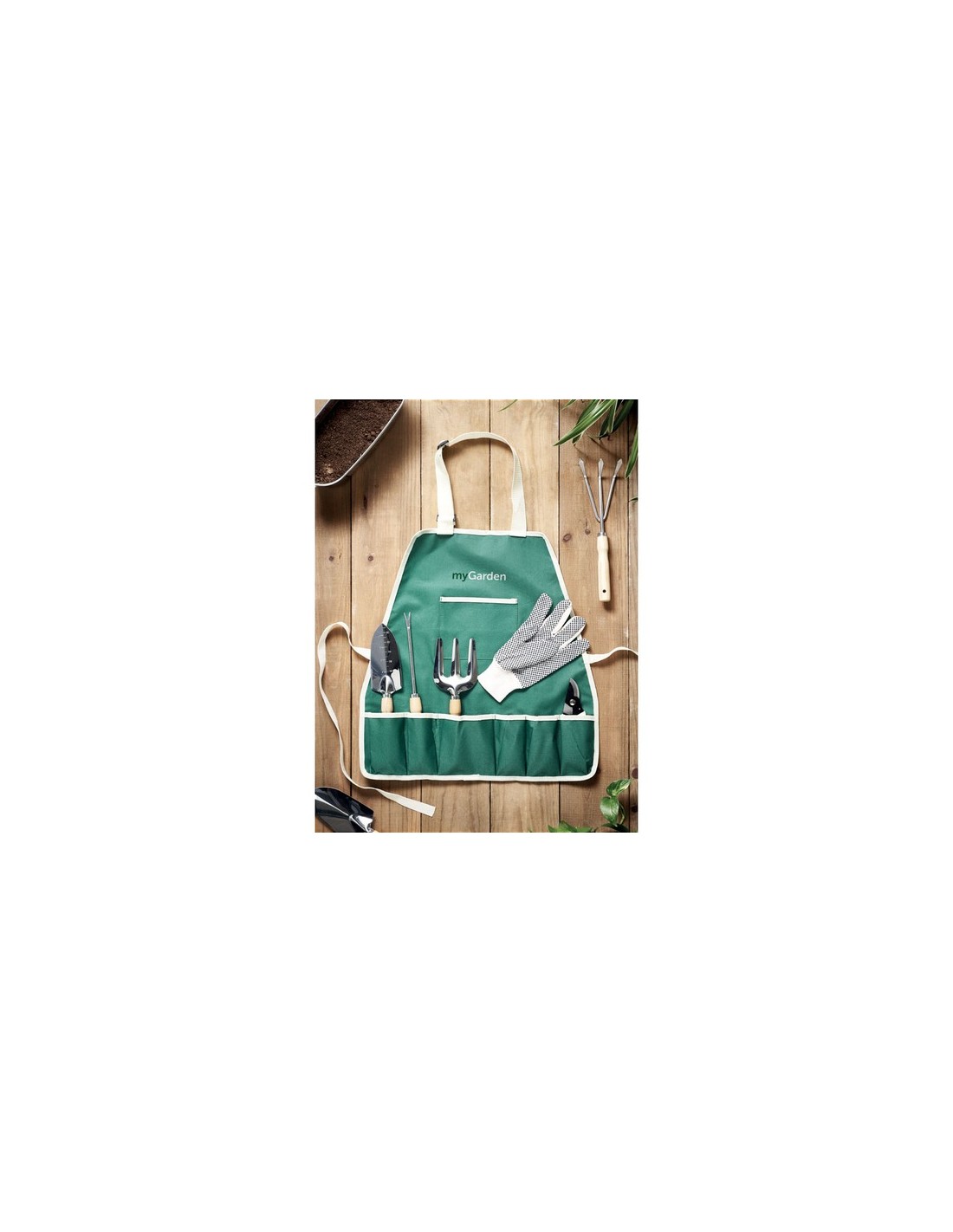 Delantal de jardín con 7 herramientas de jardín. Incluye 1 par de guantes de jardín, 2 rastrillos, 1 tijera, 1 escardador y 2 paletas.