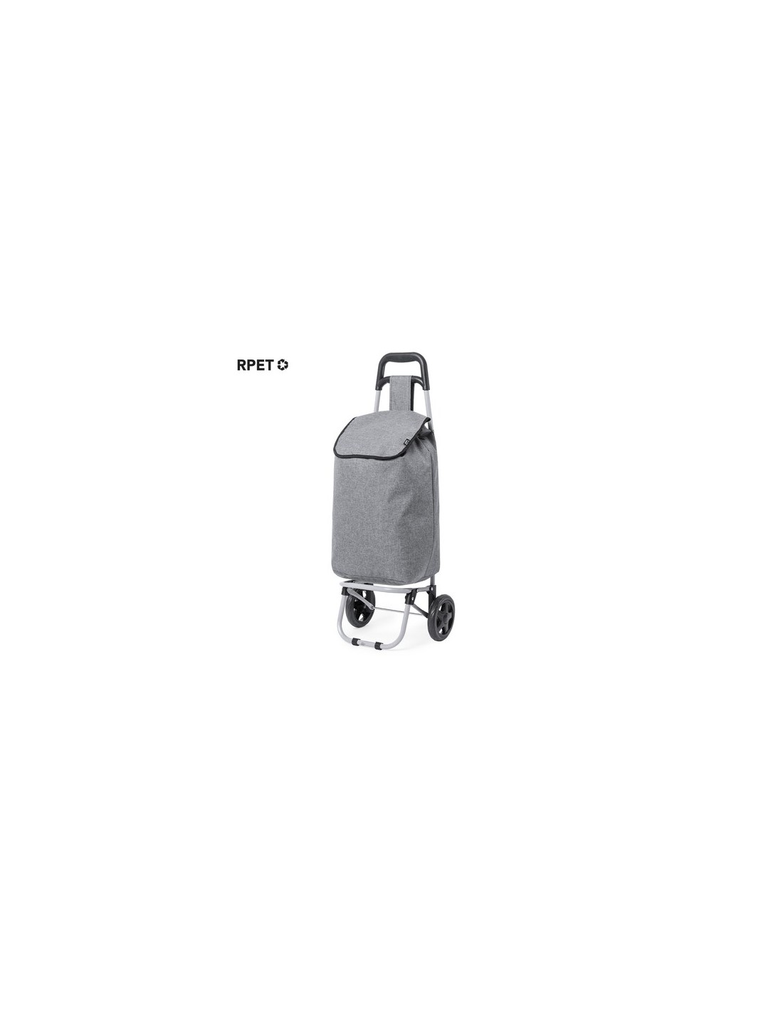 Carro de compra plegable y línea nature. Fabricado en resistente poliéster 600D RPET, elaborado a partir de plástico reciclado, para así fomentar la reutilización de residuos plásticos y ayudar a la sostenibilidad del planeta. Con asa reforzada, cuerpo metálico tubular, bolsillo de cremallera posterior y soportes con gomas de protección. Ruedas reforzadas de alta calidad. Etiqueta distintiva RPET en la solapa. Plegable Composition : Poliéster 600D RPET.