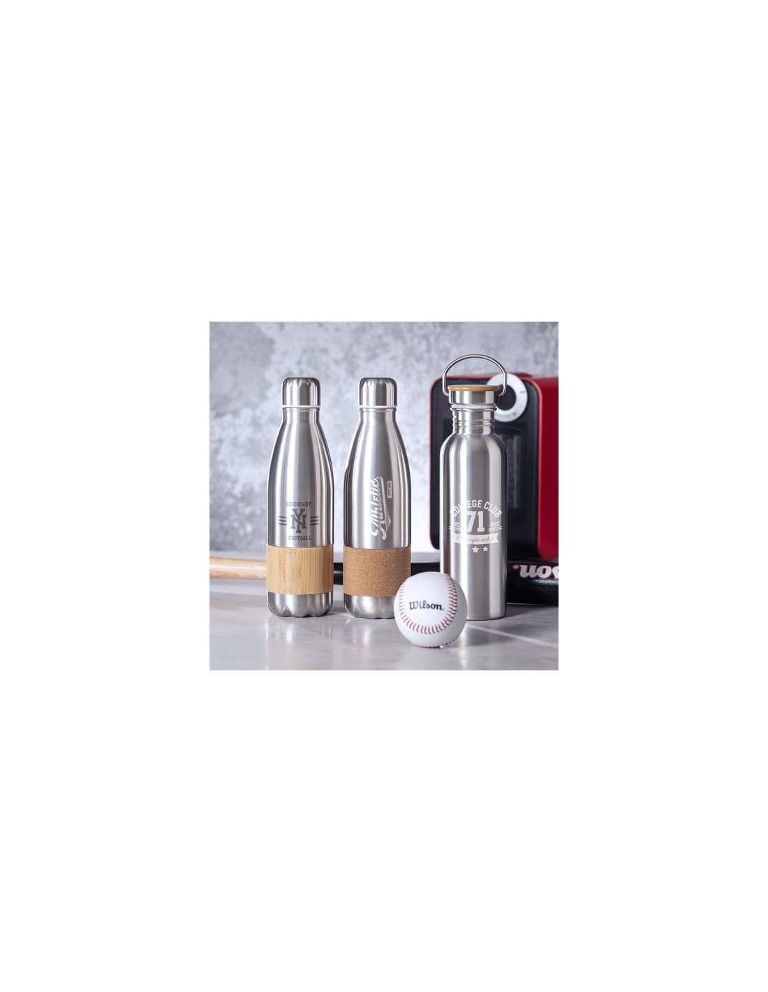 Bidón de línea nature, en combinación de materiales acero inox de acabado mate y corcho. 750ml de capacidad, con tapón de seguridad y presentado en atractiva caja de diseño eco. 750 ml Composition : Acero Inox/ Corcho.