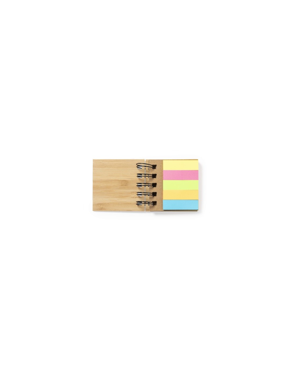 Bloc de notas de anillas de linea nature, con tapas rígidas de bambú. Con 75 notas adhesivas medianas y 125 mini notas adhesivas. 75 Notas Adhesivas 5 x 7 cm. 125 Mininotas Adhesivas 1,5 x 5 cm Composition : Bambú.