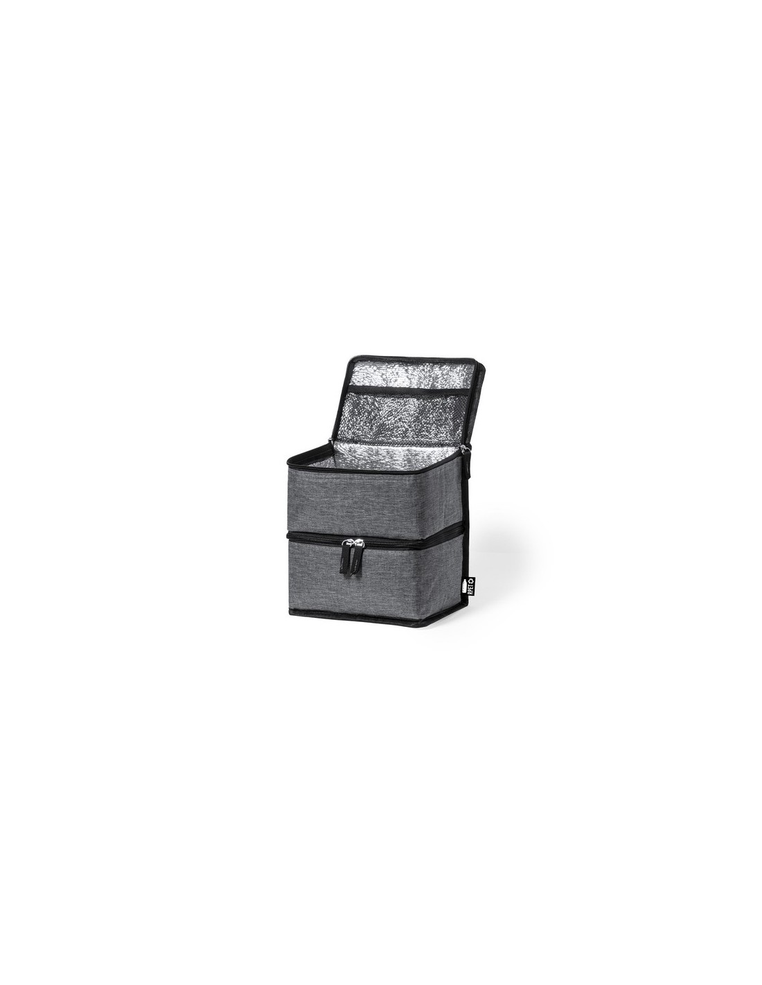 Práctica nevera de línea nature y doble compartimento fabricada en poliéster 600D RPET de alta calidad, elaborado a partir de plástico reciclado para así fomentar la reutilización de residuos plásticos y contribuir a la sostenibilidad del planeta. Asa de transporte reforzada, incluye 2 compartimentos con cierre de cremallera y doble tirador de tela, con distintivo RPET en etiqueta exterior: Compartimento superior diseñado para conservar el calor, con interior isotermo en aluminio. Compartimento inferior diseñado para conservar el frío, con interior isotermo en PEVA. 2 Compartimentos Composition : Poliéster 600D RPET/ PEVA/ Aluminio.