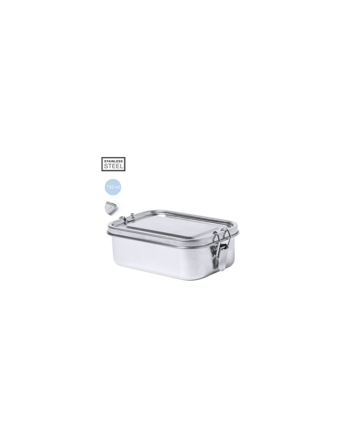 Fiambrera fabricada en acero inox y de 750 ml de capacidad. Cierre de seguridad con tapadera estanca en acero inox. Presentada en atractiva caja individual de diseño. 750 ml. Cierre Seguridad Composition : Acero Inox.