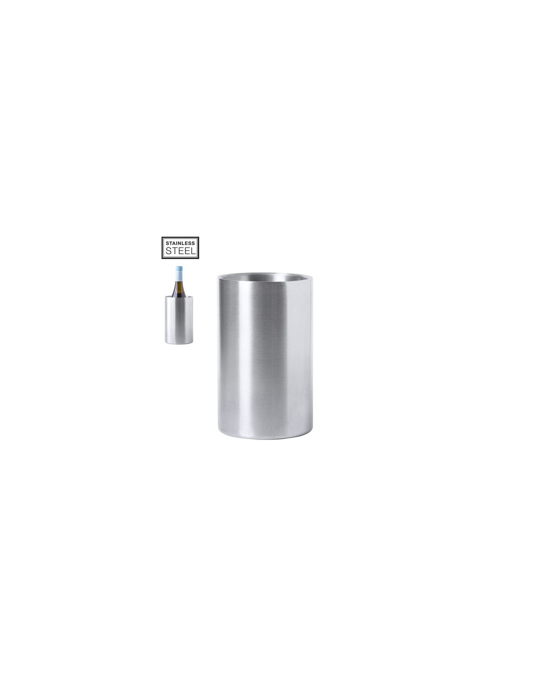 Enfriador, fabricado en acero inox de acabado mate para 1 botella. Presentado en atractiva caja de diseño. Composition : Acero Inox.