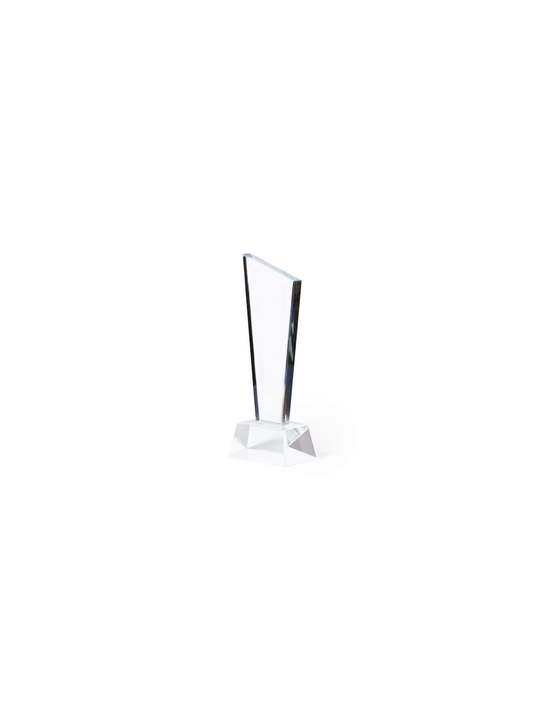 Trofeo de grueso cristal con original diseño y resistente base. Especialmente diseñado para marcaje a láser y presentado en estuche de protección en resistente cartón y cierre magnético, con interior troquelado en espuma. Composition : Cristal.