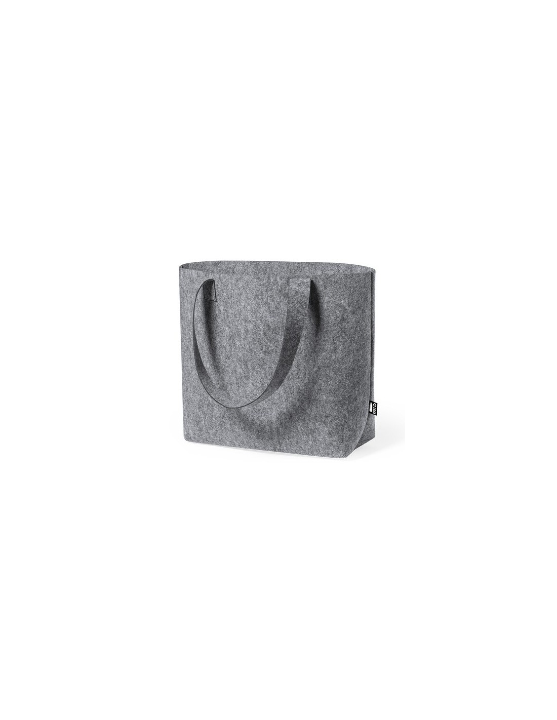 Bolsa de línea nature y en resistente fieltro RPET reciclado, fruto de la combinación del proceso de reciclaje de materiales plásticos junto con la técnica milenaria de fabricación del fieltro, dando como resultado un material de eco-tendencia que, además de ser de origen reciclado, también se convierte en reciclable. Con fuelle en la base, asas reforzadas largas y extra anchas (62 x 3,5 cm). Resistencia hasta 6kg, con distintivo RPET en etiqueta exterior. Composition : Fieltro RPET.