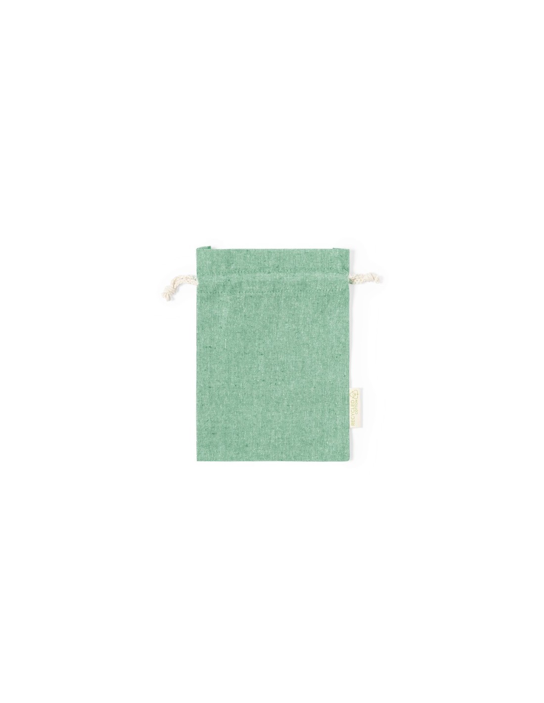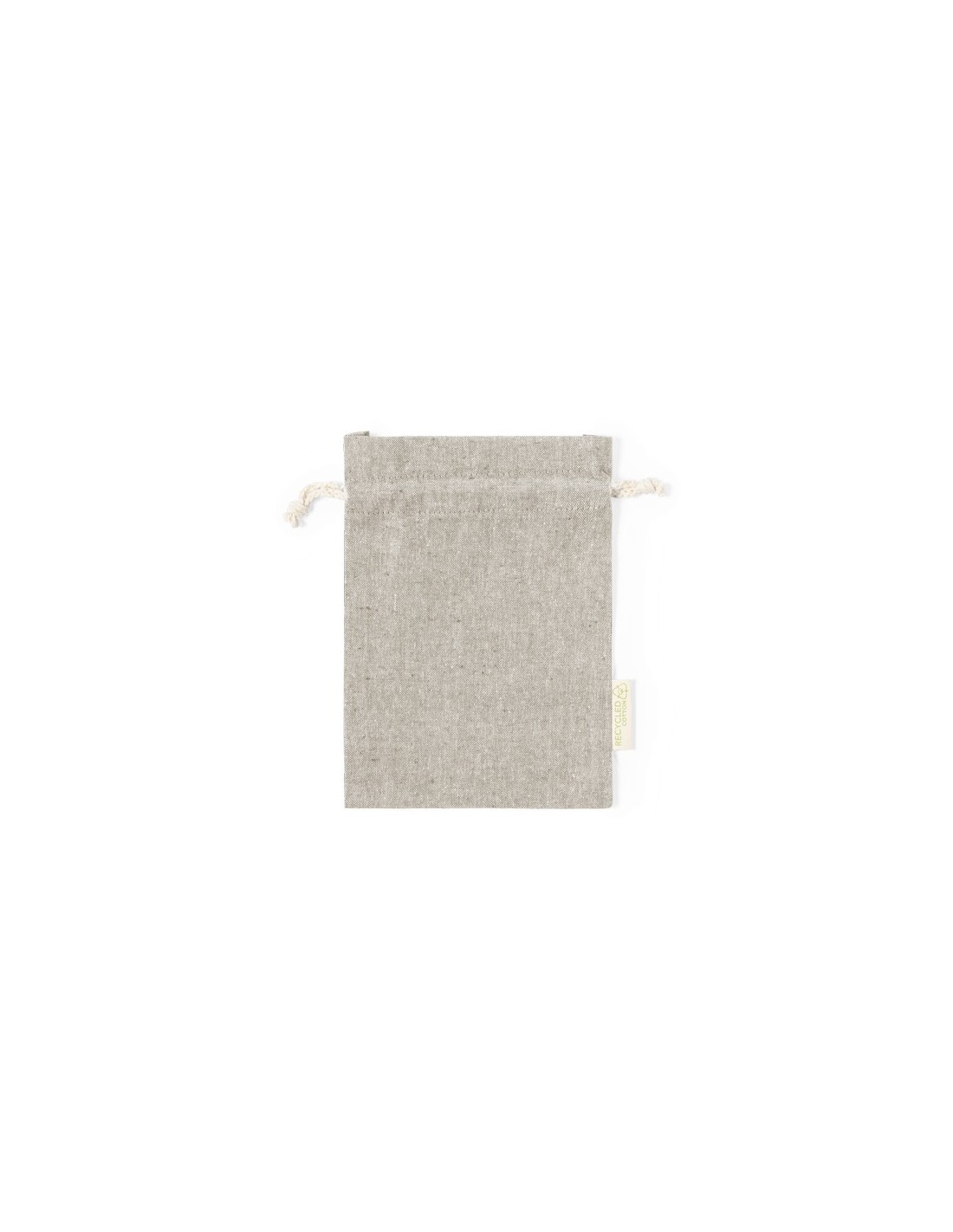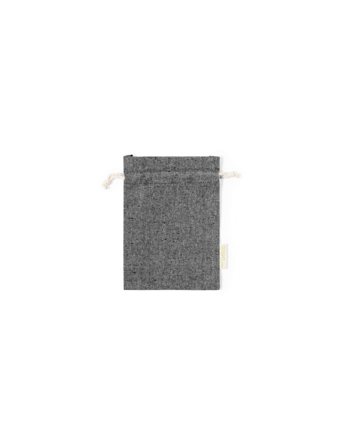 Bolsa eco-friendly en resistente material 100% algodón reciclado GRS de 120g/m2. Certificación GRS (Global Recycled Standard / Estándar de Reciclaje Global), que garantiza el origen reciclado del material usado para fabricar el producto. Cierre de cordón de algodón y acabado cosido, incluye etiqueta exterior con distintivo algodón reciclado. Composition : 100% Algodón Reciclado 120 g/ m2.