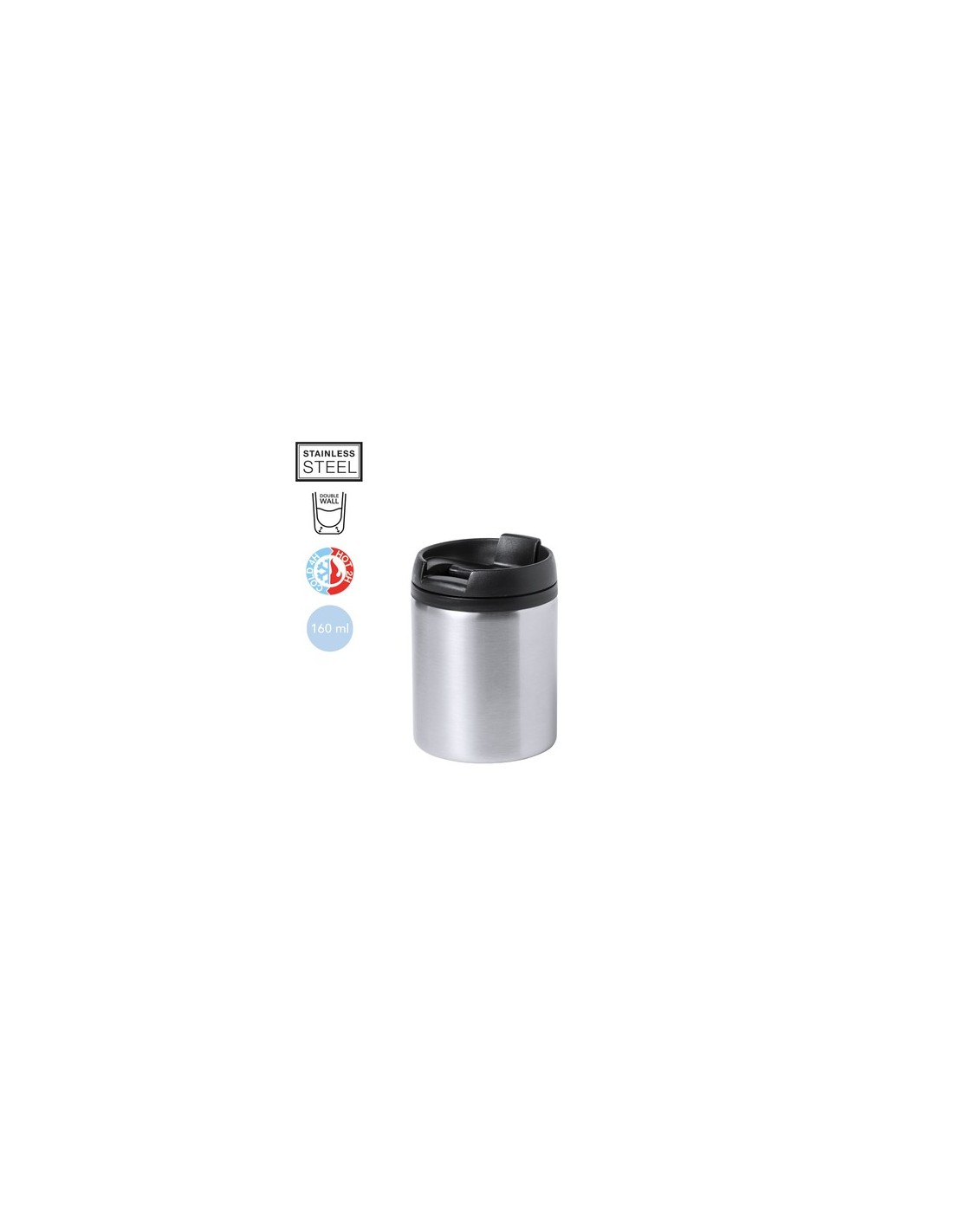 Vaso térmico de sobremesa fabricado en acero inox, de 160ml de capacidad. Incluye tapa con dosificador y abrefácil. Disponible en variada gama de colores metalizados. Presentada en atractiva caja de diseño. 160 ml Composition : Acero Inox.