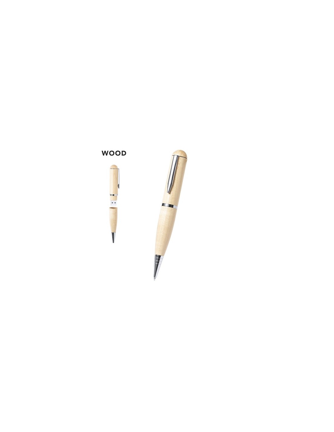 Bolígrafo USB de línea nature. Con memoria USB de 16GB de capacidad integrada en la capucha y fabricado en madera, para así fomentar la utilización de materiales naturales. De mecanismo giratorio y con tinta azul. Presentado en atractiva caja de acabado kraft. Composition : Madera.