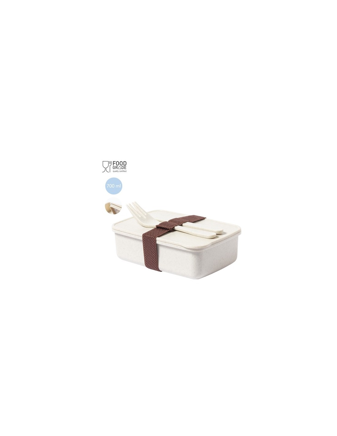 Fiambrera fabricada en PP veteado libre de BPA. De 700ml de capacidad, incluye cinta elástica de seguridad con tenedor y cuchillo. Certificación Food Grade, garantizando la seguridad cuando los alimentos entran en contacto con el material usado para fabricar el producto. 700 ml Composition : PP.