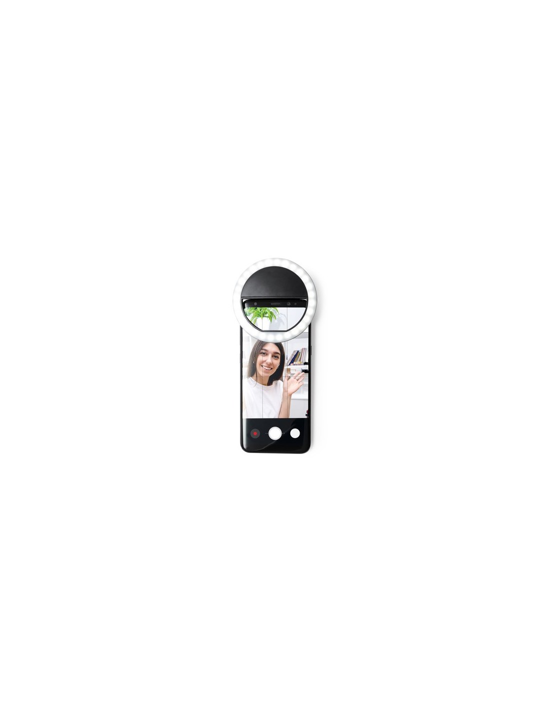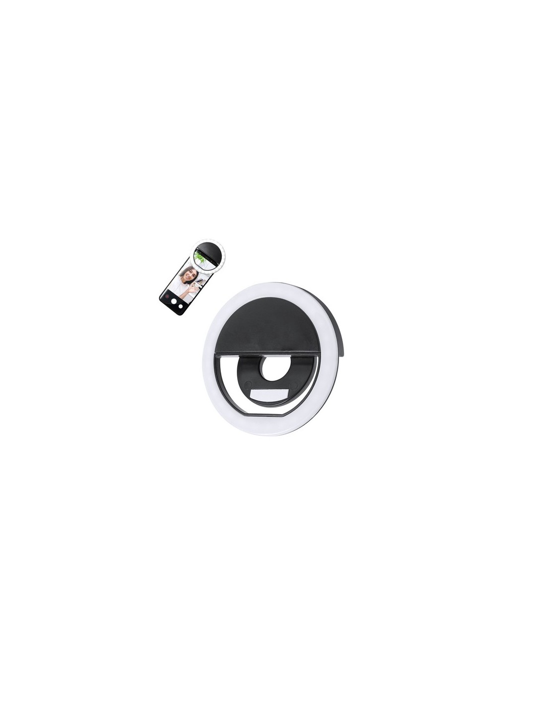 Anillo de luz led con acople para smartphone, fabricado en resistente ABS. 28 ledes, con 3 niveles de intensidad y recargable por USB (cable Micro USB incluido). Presentado en atractiva caja de diseño. Disponible manual en español e inglés. 28 Ledes. 3 Posiciones de Luz. Batería 80 mAh