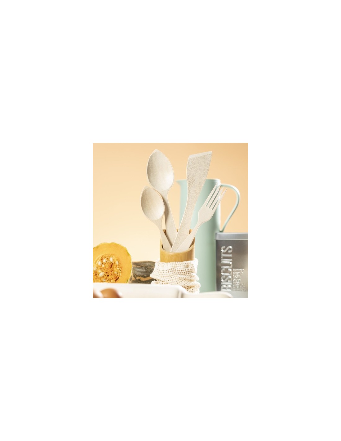 Tenedor mediano de fabricación europea y hecho en madera natural, con cómodo mango. Incluye certificación PEFC, contribuyendo así a la preservación de los bosques y la biodiversidad forestal. Composition : Madera.
