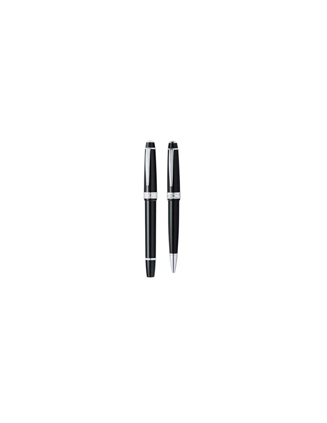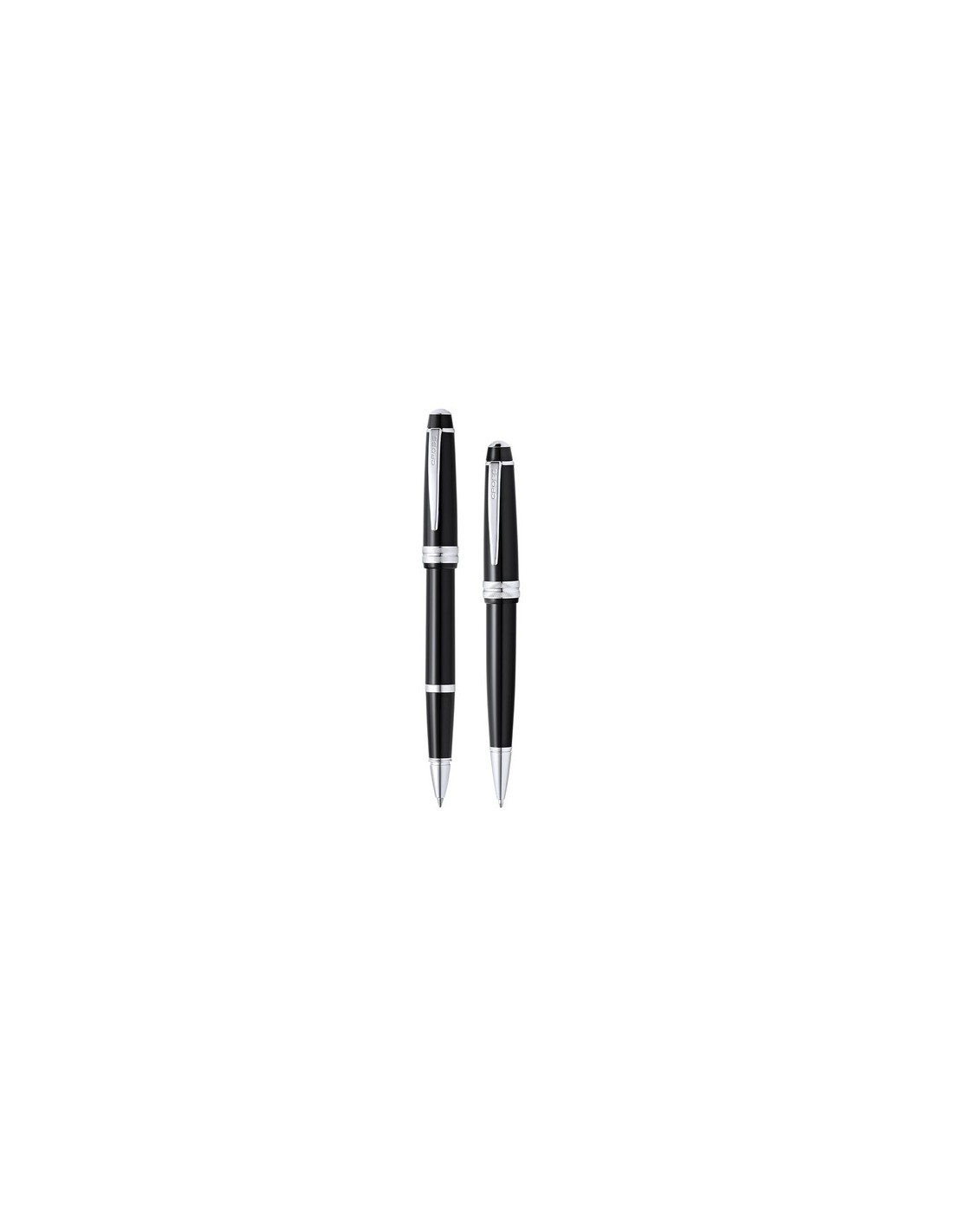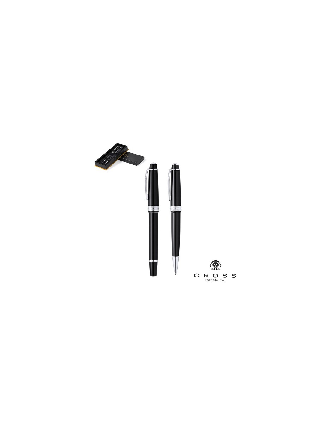Set de bolígrafo y roller de Cross modelo Bailey Light, que combina una resina de alto brillo con acabados metálicos de cromo pulido. De cartucho jumbo y en tinta negra. Presentado en elegante estuche individual de color negro con logotipo de la marca, e interior en suave antelina. Bolígrafo y Roller.. Tinta Negra