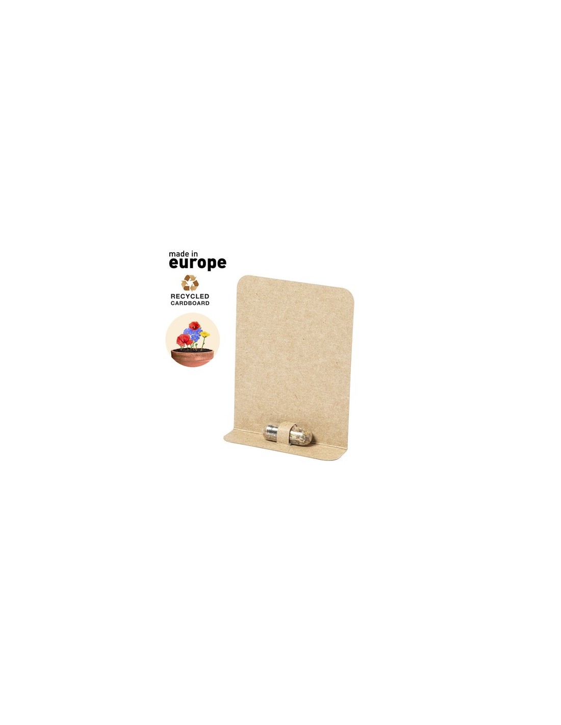 Cápsula de semillas, presentada en estuche de cartón reciclado con instrucciones de plantado y distintivo Made in Europe. Flores silvestres en colores surtidos. Flores Silvestres Composition : Cartón Reciclado.