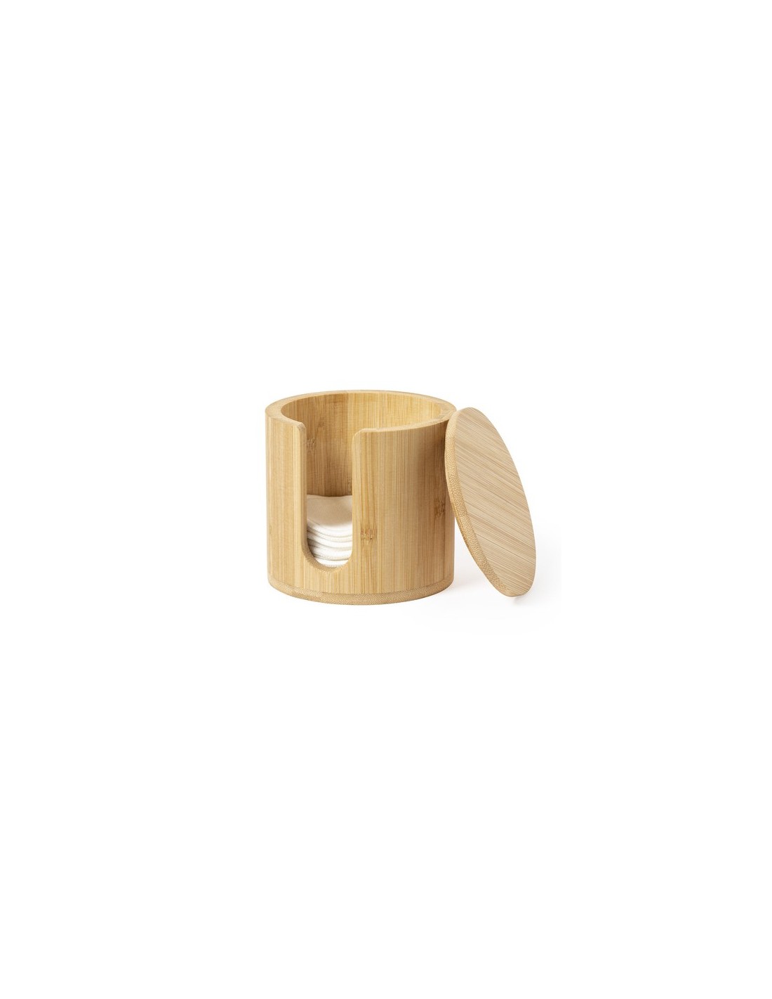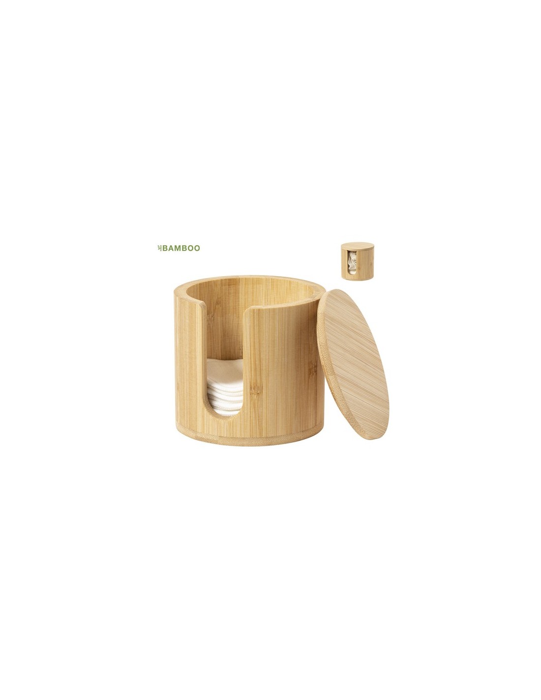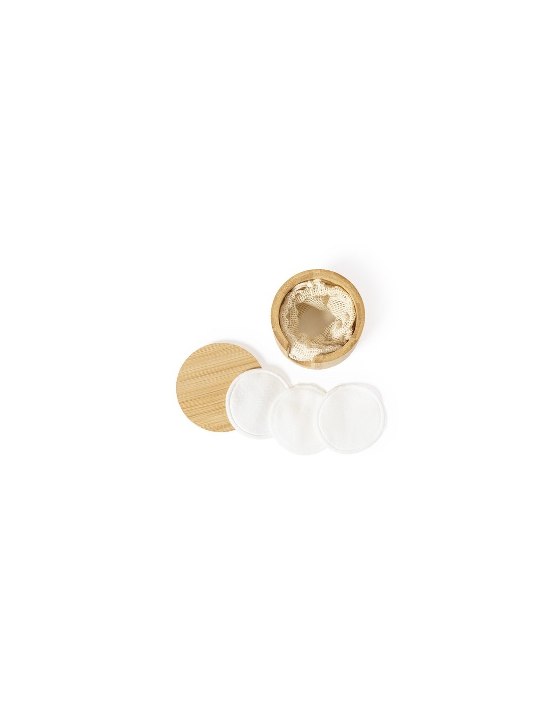 Dispensador de discos desmaquíllantes de línea nature, fabricado en bambú para así fomentar el uso de materias primas naturales. Incluye 10 discos de algodón reutilizables y bolsa de lavado. Presentado en caja individual de diseño eco. 10 Toallitas Algodón. Reutilizables. Bolsa Lavado Algodón Incluida Composition : Bambú.