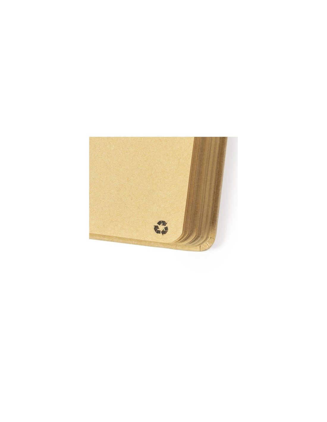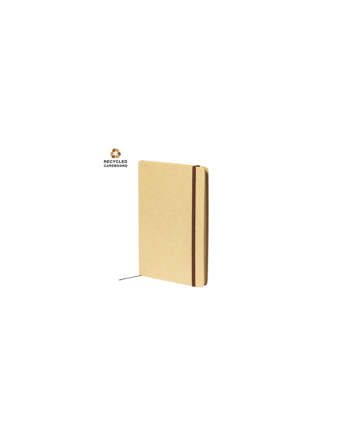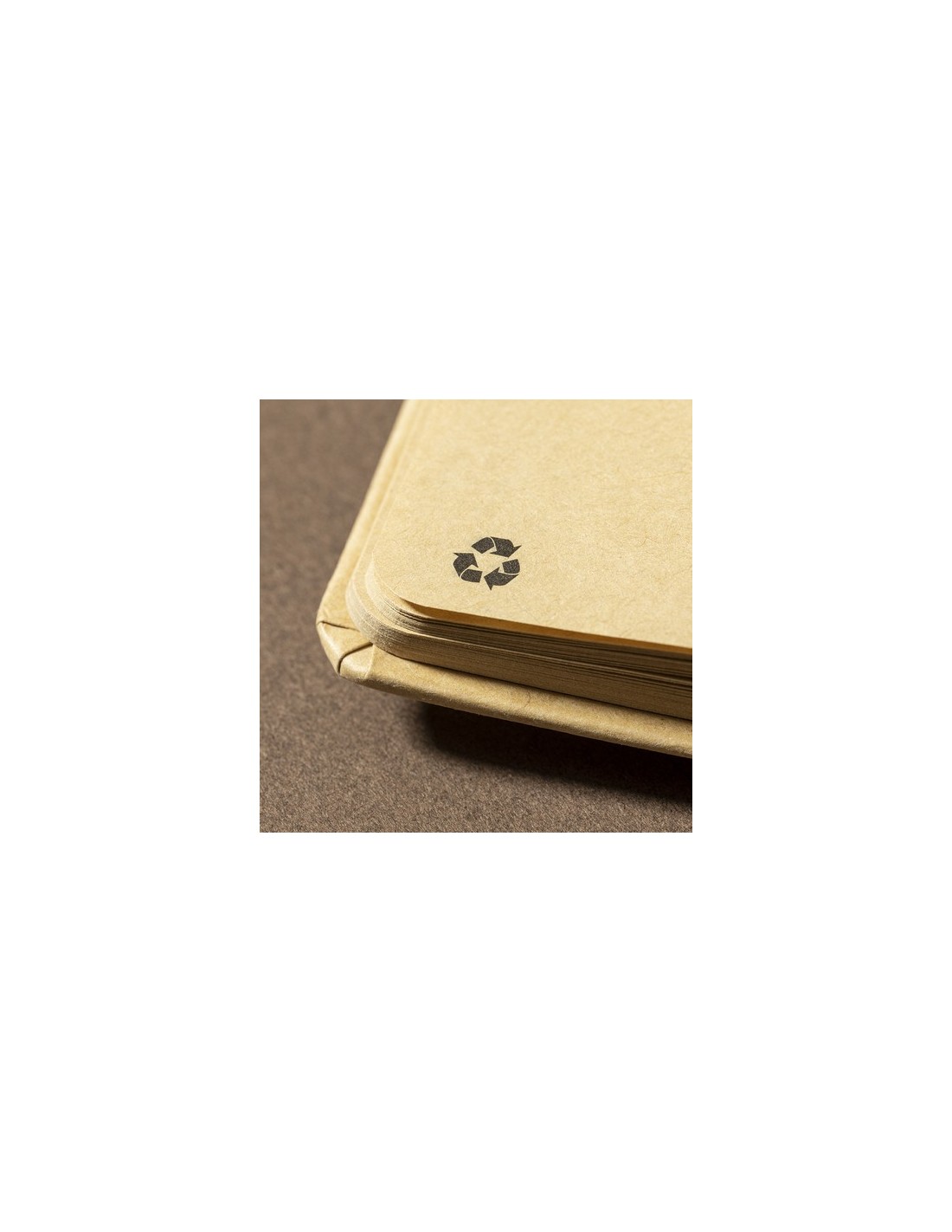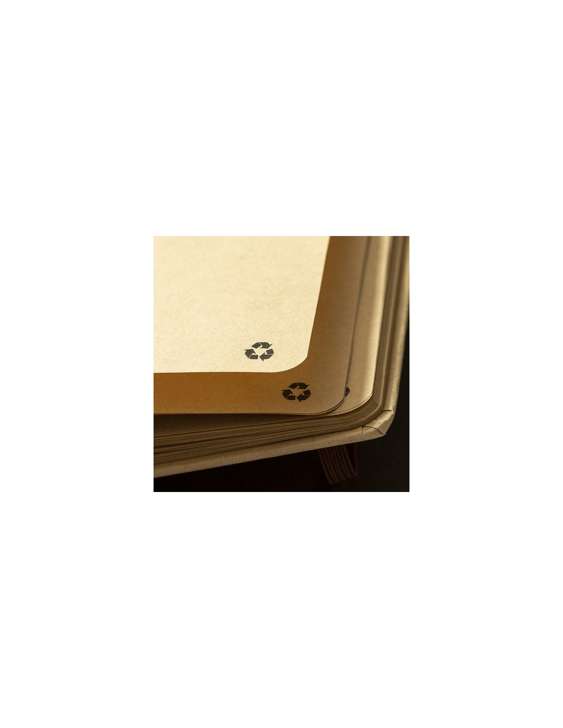 Bloc de notas A5 de línea nature, con tapas duras en resistente cartón reciclado. De 100 hojas lisas en acabado kraft con distintivo reciclado, con elástico de sujeción y marcapáginas de tela a juego. Portada Rígida. 100 Hojas Composition : Cartón Reciclado.