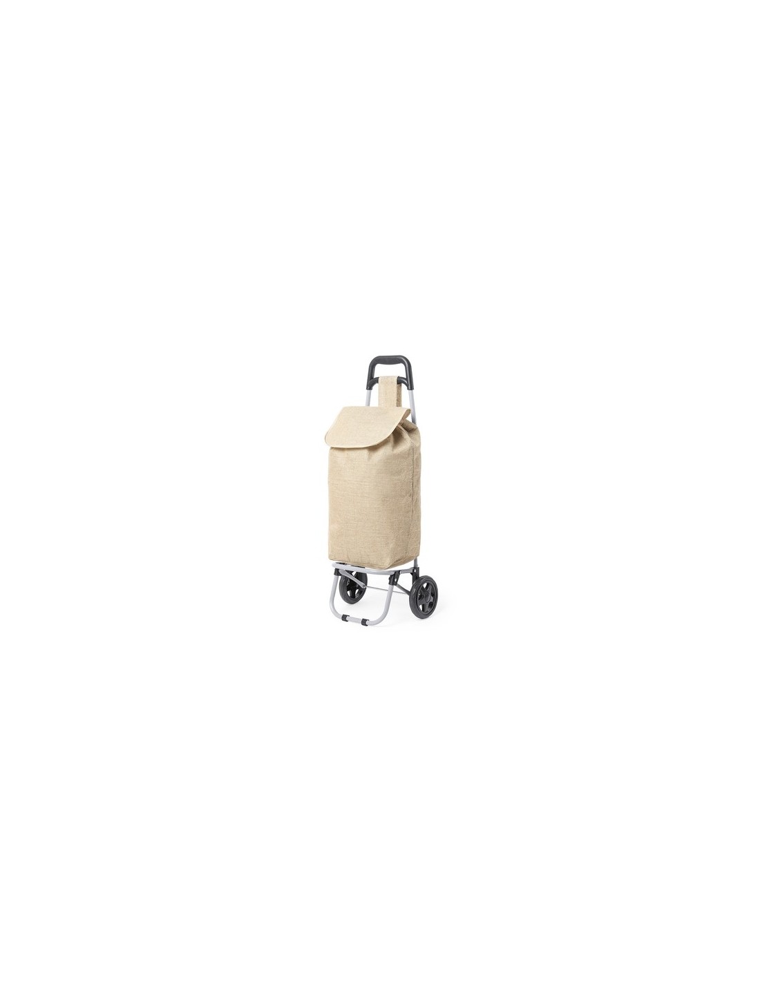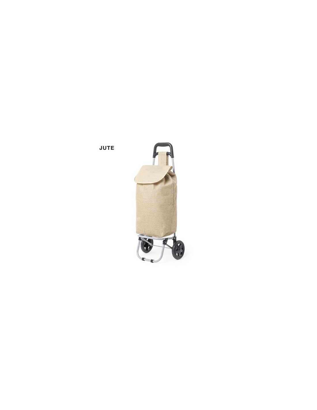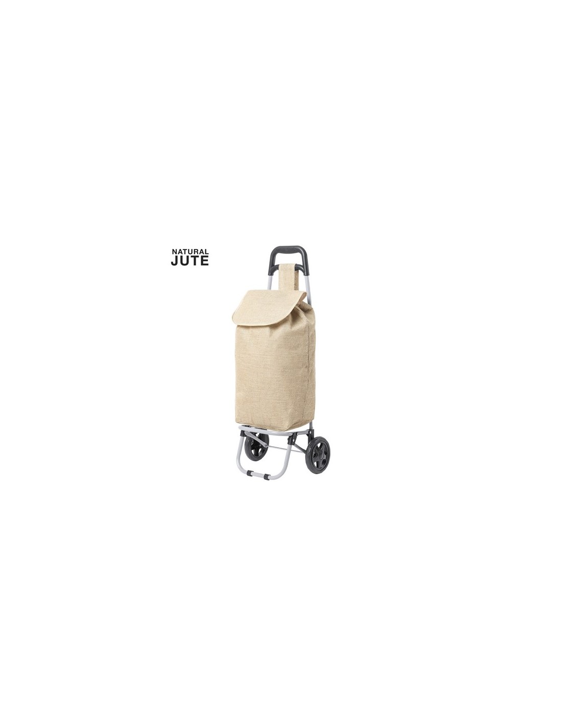 Carro de compra plegable y línea nature. Fabricado en resistente yute, fomentando la utilización de materiales naturales y así ayudar a la sostenibilidad del planeta. Con asa reforzada, cuerpo metálico tubular, bolsillo de cremallera posterior y soportes con gomas de protección. Ruedas reforzadas de alta calidad. Plegable Composition : Yute.