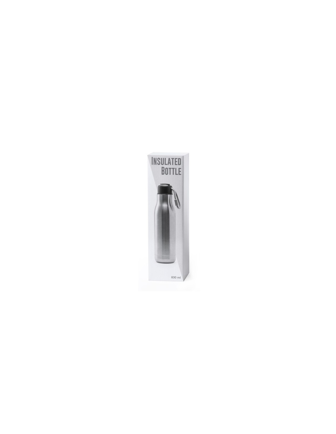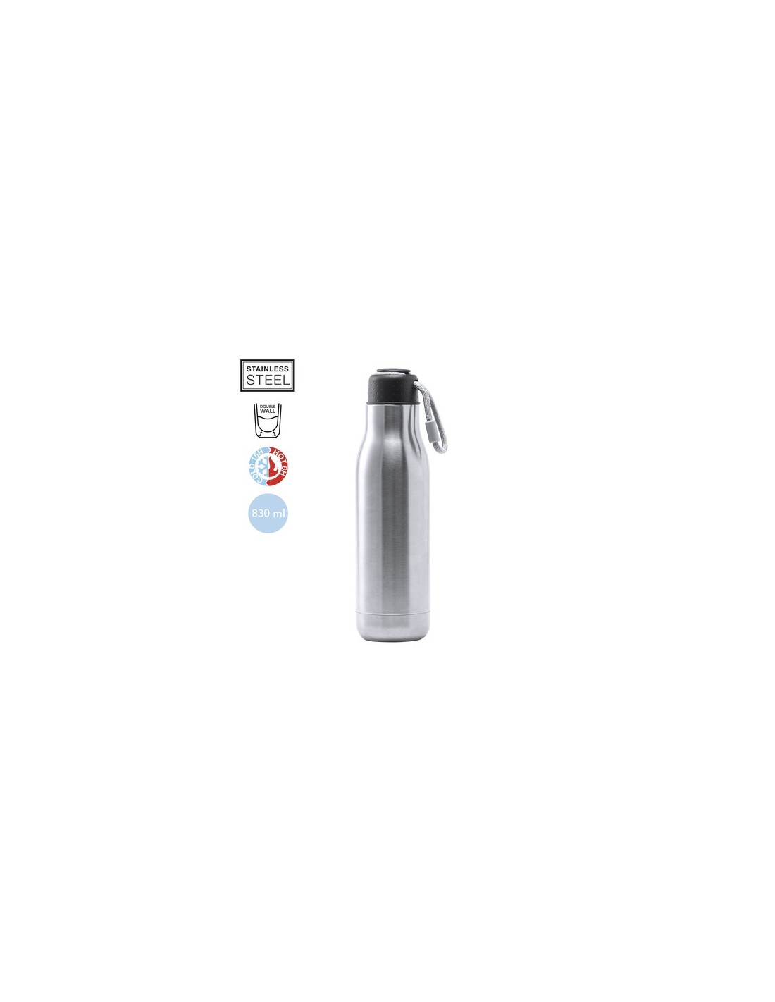 Bidón térmico de acero inox y doble pared de 830ml de capacidad y de acabado brillo. Tapón de seguridad libre de BPA y presentado en atractiva caja de diseño. 830 ml Composition : Acero Inox.