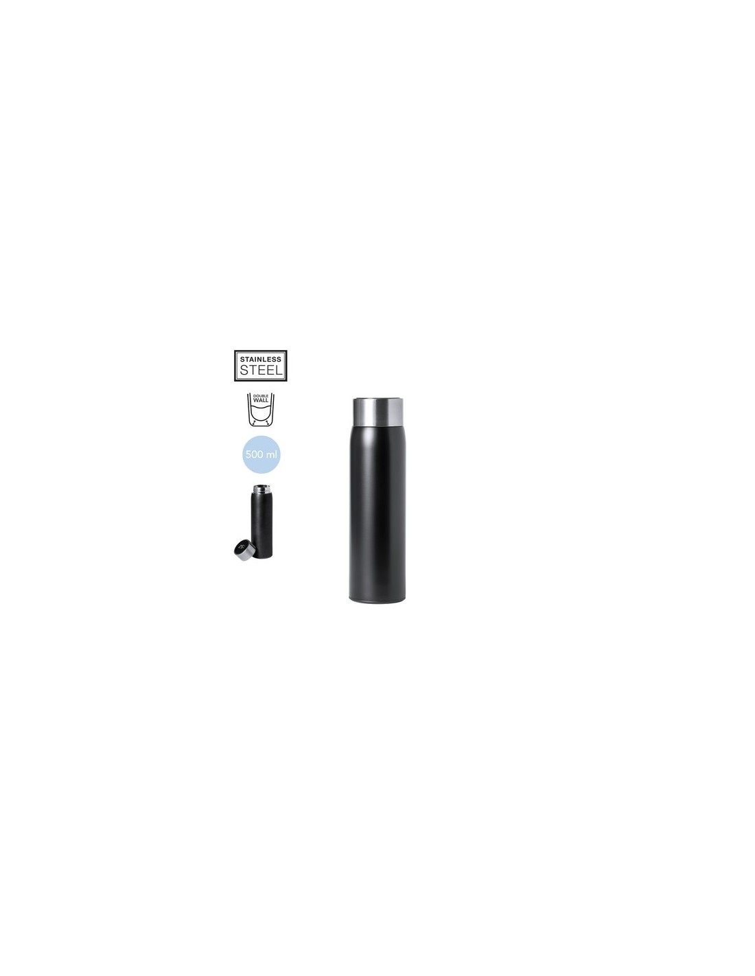 Bidón térmico de acero inox y doble pared, con medidor de temperatura táctil integrado en tapón. 500ml de capacidad y de acabado mate. Con tapón de seguridad libre de BPA y presentado en atractiva caja de diseño. Alimentación a pilas (de botón incluida) y disponible manual de instrucciones en español e inglés. 500 ml. Medidor Temperatura Táctil Composition : Acero Inox.