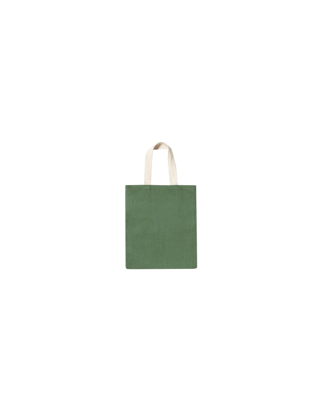 Bolsa en resistente combinación de cuerpo en yute de 240g/m2 y asas de algodón en tono natural. De acabado cosido, con asas medianas reforzadas. Disponible en variada gama de colores, con resistencia hasta 6kg de peso. Composition : Yute/ Algodón.