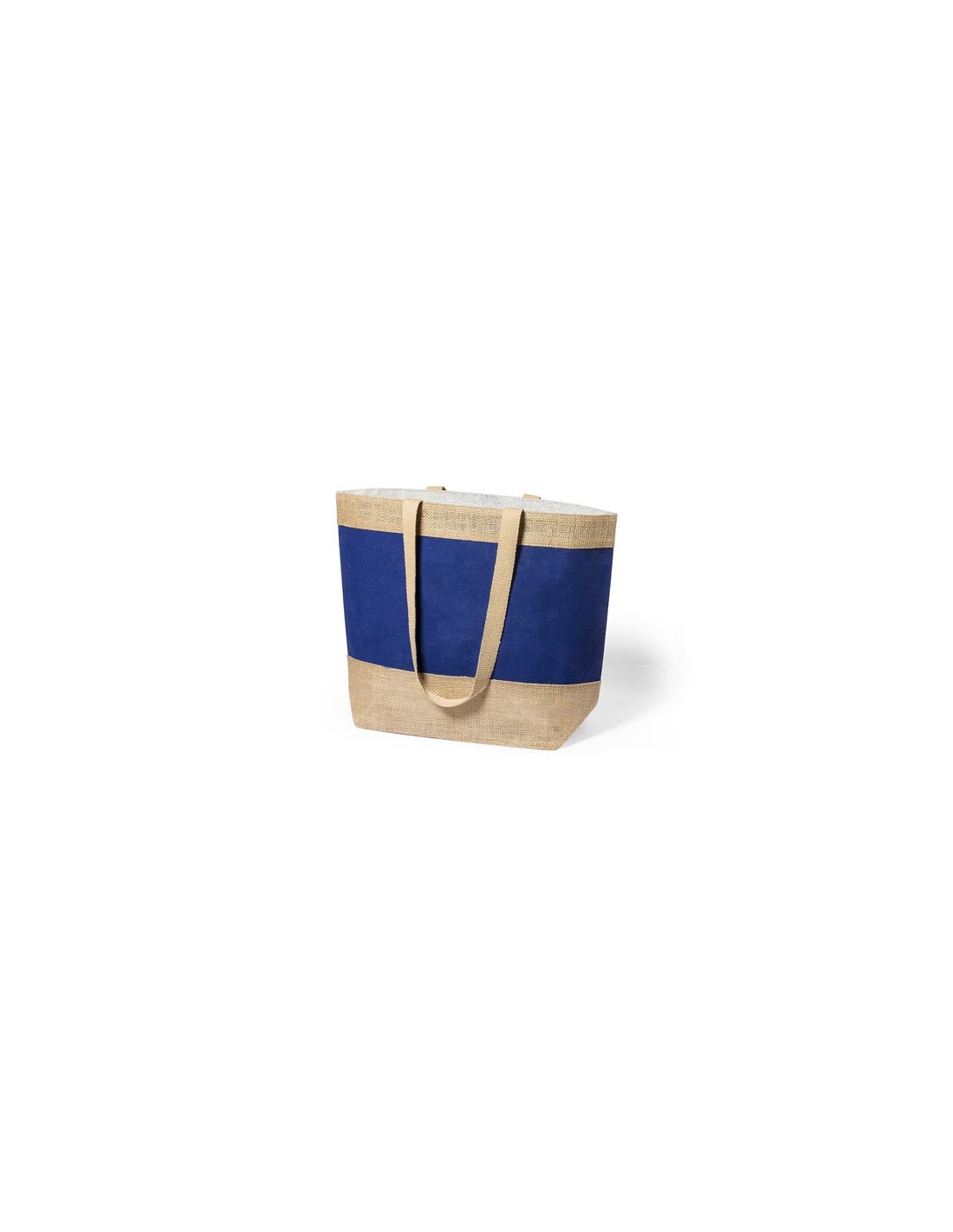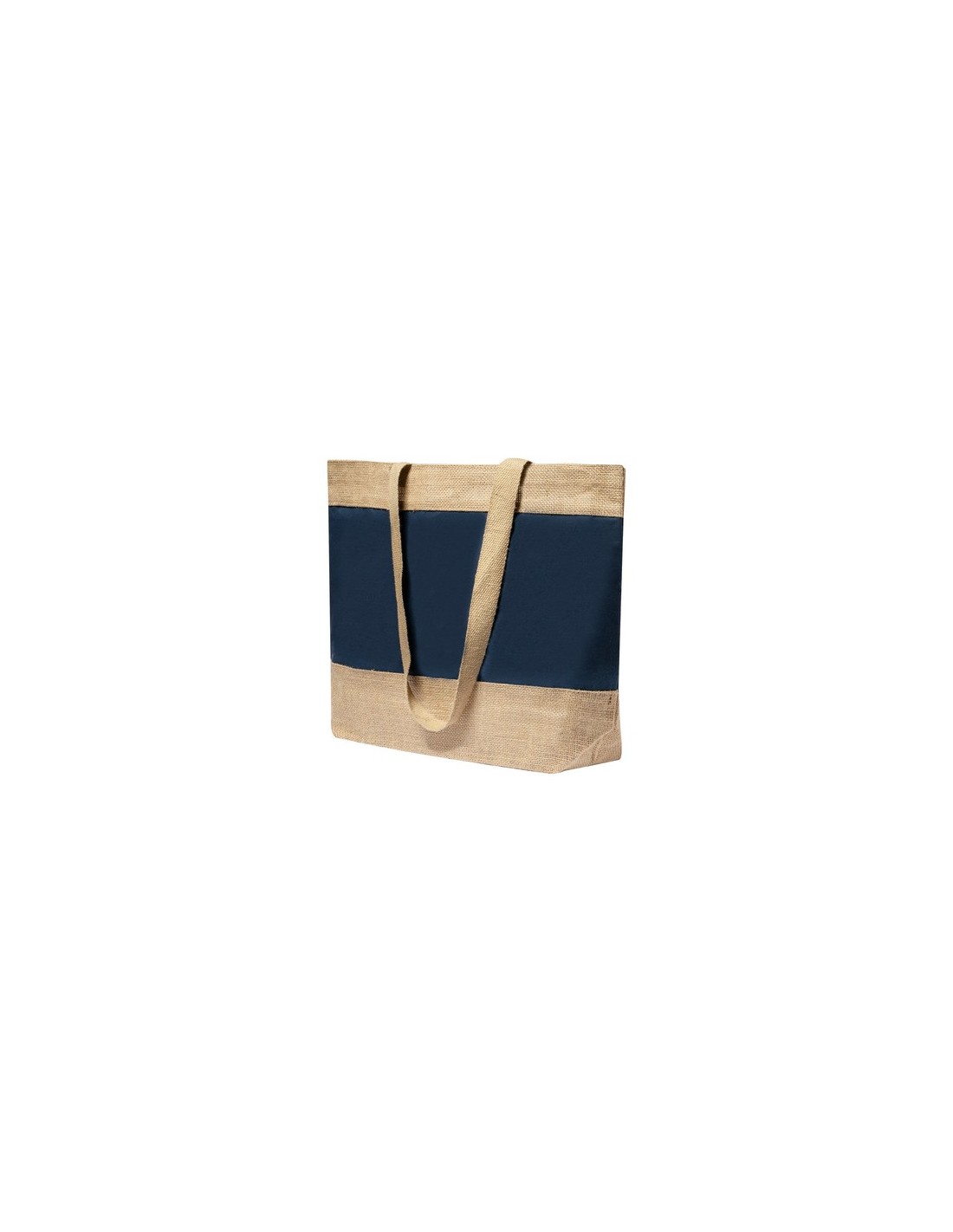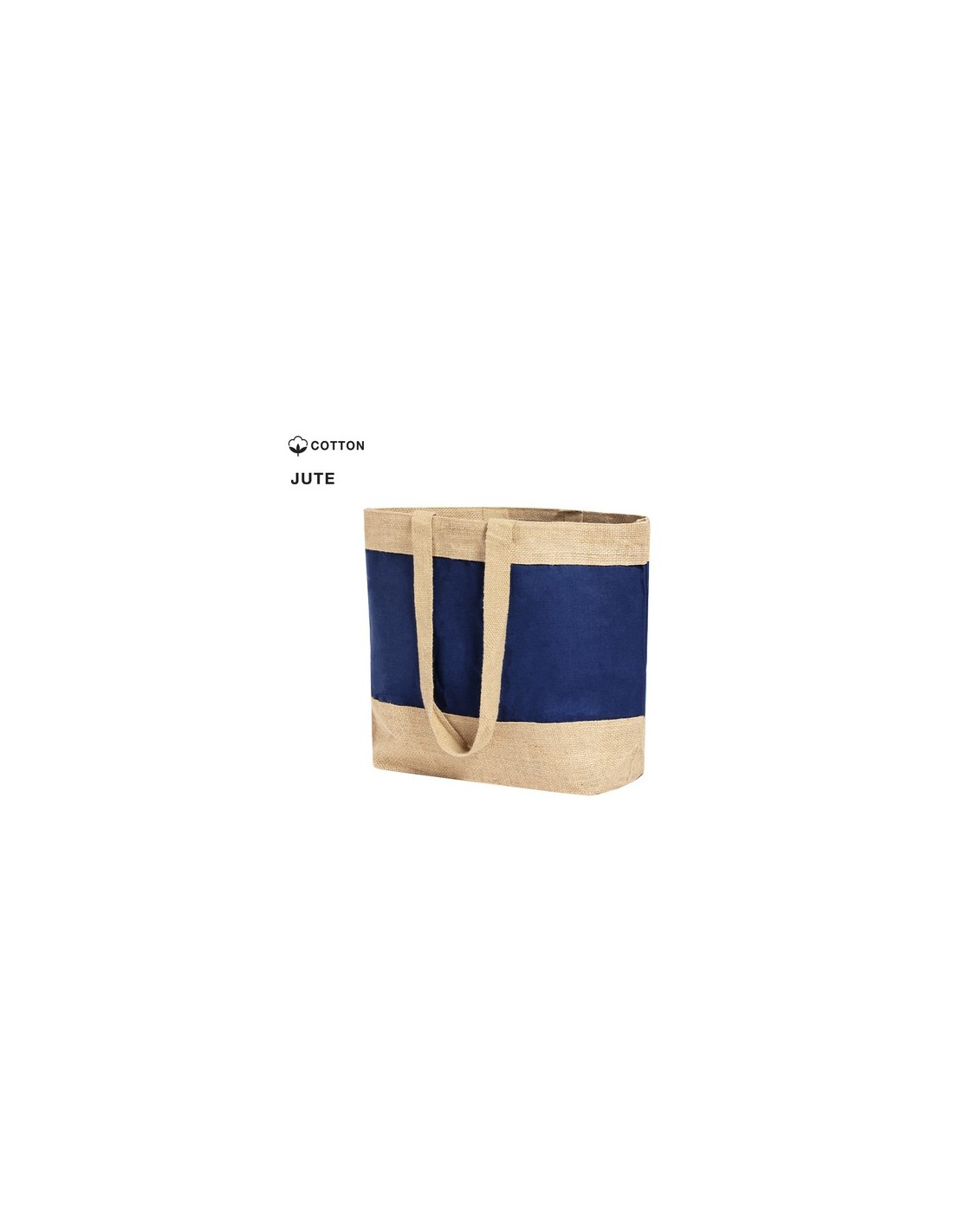 Bolsa en resistente combinación de yute laminado y algodón laminado, con asas de algodón natural. De acabado cosido, con asas largas reforzadas y disponible en amplia gama de colores. Resistencia hasta 10kg de peso. Composition : Yute Laminado/ Algodón Laminado.