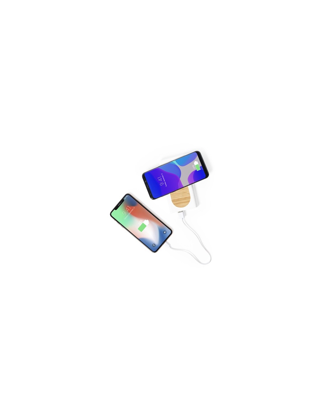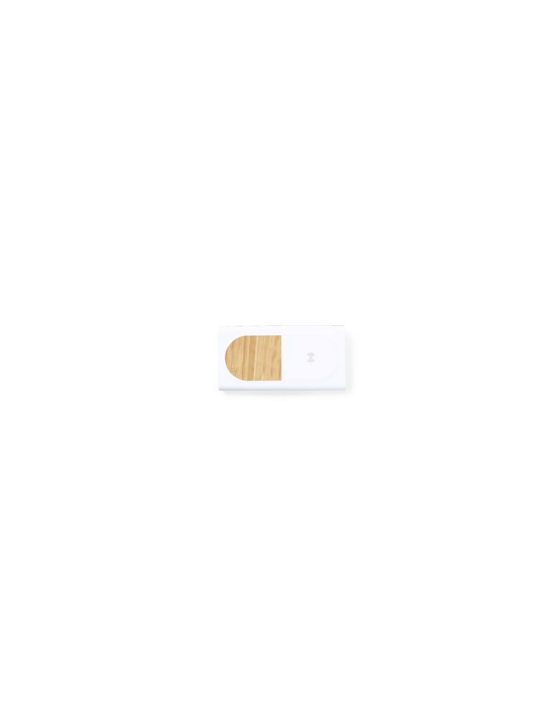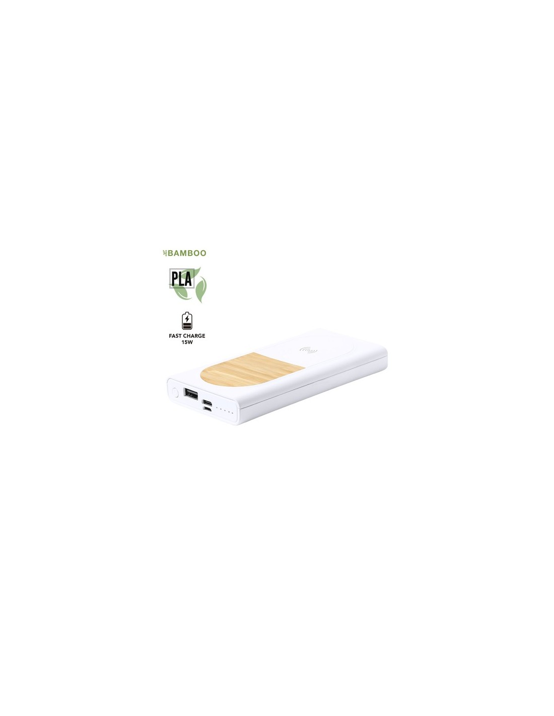 Batería auxiliar externa de línea nature con cargador inalámbrico integrado y función carga rápida de 15W. Carcasa fabricada en combinación de bambú y PLA -Ácido PoliLáctico-, que se obtiene a partir de recursos 100% naturales como el almidón de maíz, la yuca o la caña de azúcar, pudiendo convertirse en 100% compostable al final de su ciclo de vida útil. 8.000 mAh de capacidad, con indicador de estado de carga. Conector dual de entrada y salida Tipo C, entrada micro USB y 1 salida USB. Cable de carga micro USB incluido. Compatible con dispositivos equipados con tecnología de carga inalámbrica. Amplia superficie de marcaje y presentado en atractiva caja de diseño eco. Distintivo PLA sobre el artículo. Las capacidades mostradas en todas nuestras baterías auxiliares externas son reales, incorporando todas ellas baterías de grado A y no recicladas, con una vida útil de al menos 500 ciclos de carga y según normativa CE. Además, están fabricadas conforme a los estándares RoHS y en cumplimiento con los siguientes requisitos de seguridad: Sistema de protección contra sobrecarga del power bank. Sistema de protección contra descarga completa que proporciona una mayor durabilidad del power bank. Sistema de bloqueo para evitar cortocircuitos. Sistema de transferencia de carga constante, acorde con la capacidad del dispositivo de destino. Inalámbrico 15W. 8000 mAh. 1 Salida USB y 1 Tipo C. Entrada Micro USB y Tipo C Composition : Bambú/ PLA Compostable.