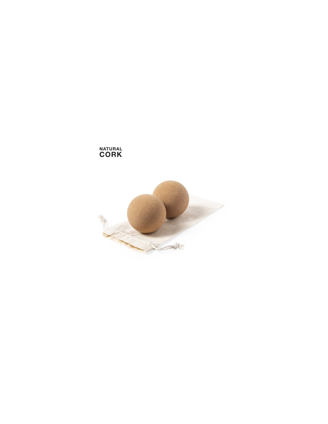 Set de 2 bolas de línea nature para la práctica del yoga y otras actividades. Fabricadas en resistente corcho natural y presentadas en funda de algodón con cierre de cordón. Con ilustraciones de ejercicios. 2 Piezas. Funda Algodón Composition : Corcho.