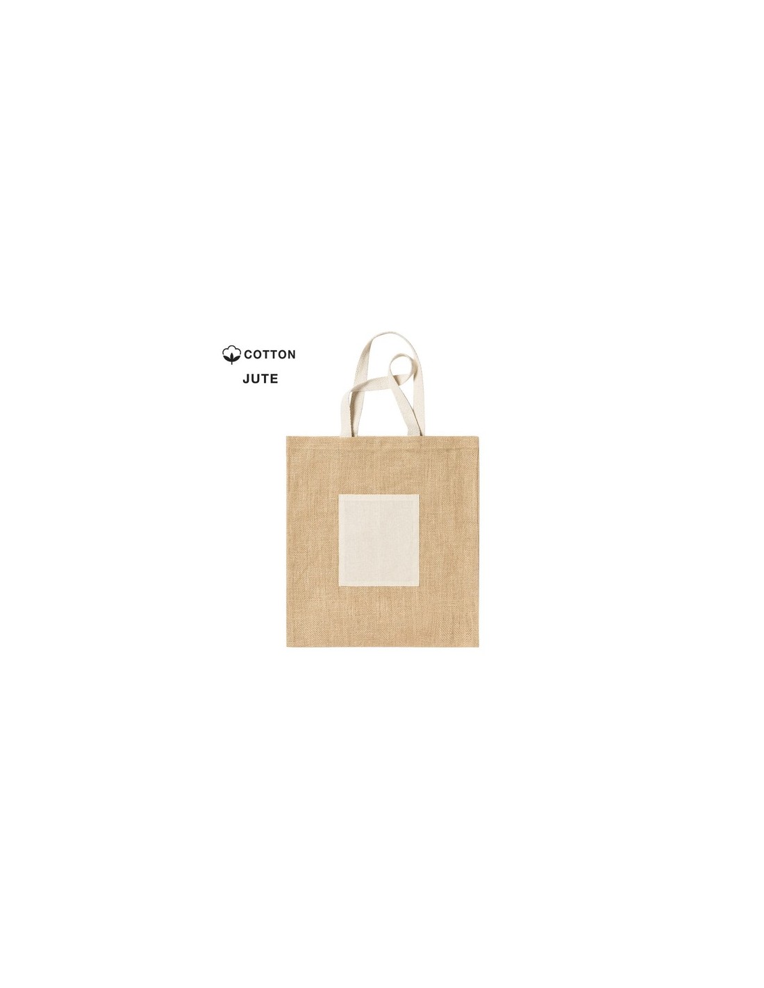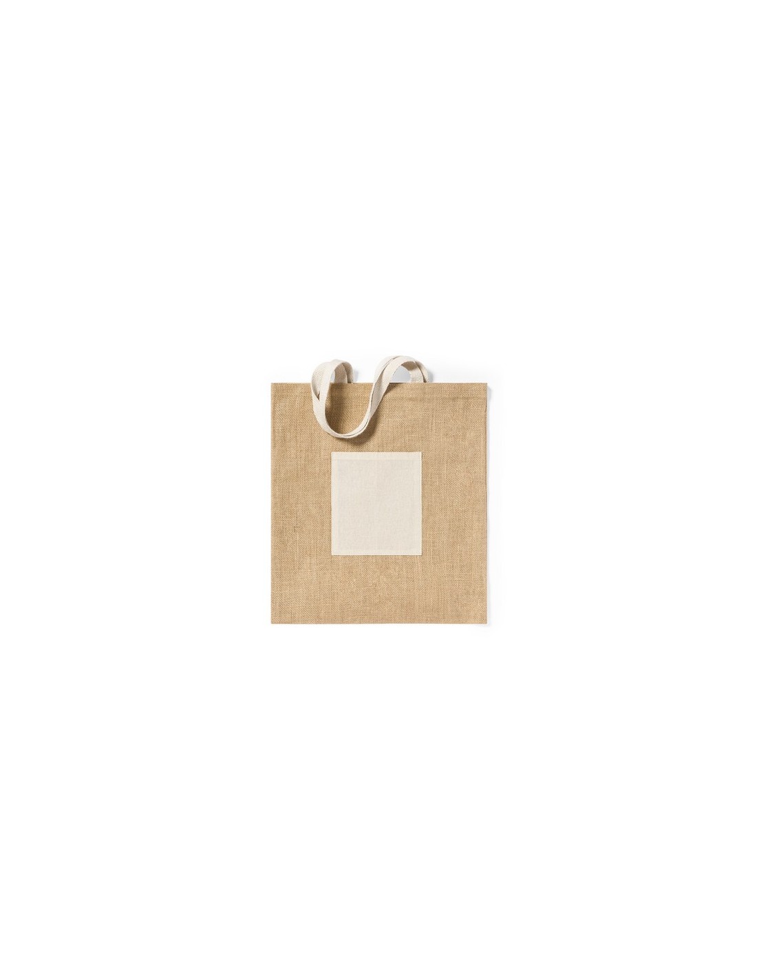 Bolsa en resistente combinación de cuerpo en yute de 240g/m2 y asas de algodón, todo en tono natural. De acabado cosido, con asas medianas reforzadas. Bolsillo frontal de algodón y resistencia hasta 6kg de peso. Composition : Yute/ Algodón.
