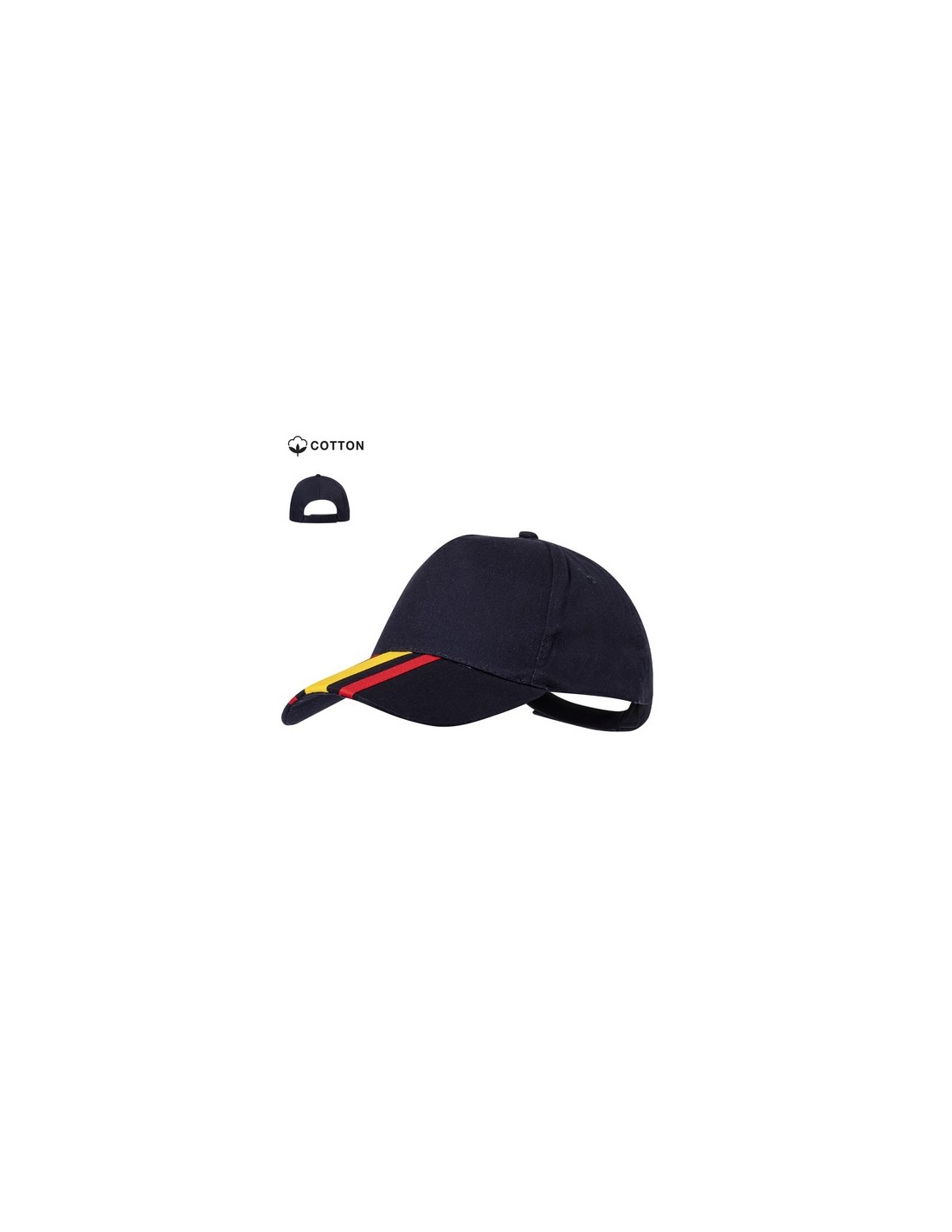 Gorra de diseño España en material 100% algodón peinado. De 5 paneles y con cierre ajustable de velcro. 5 Paneles. Cierre Velcro Composition : 100% Algodón Peinado.