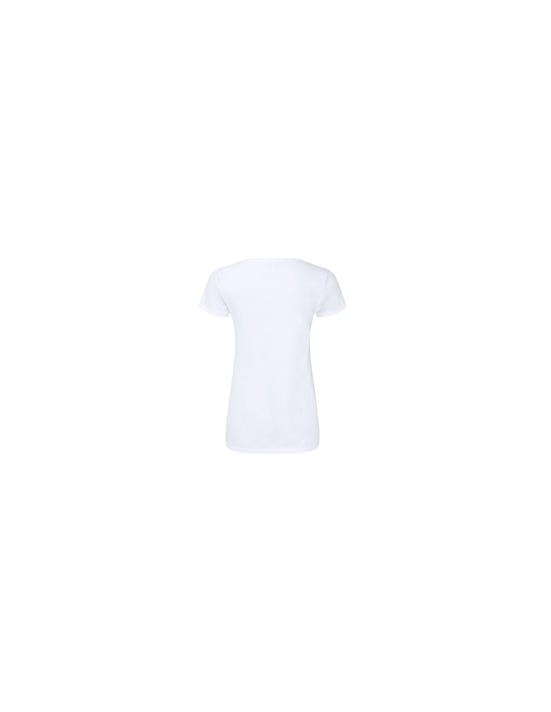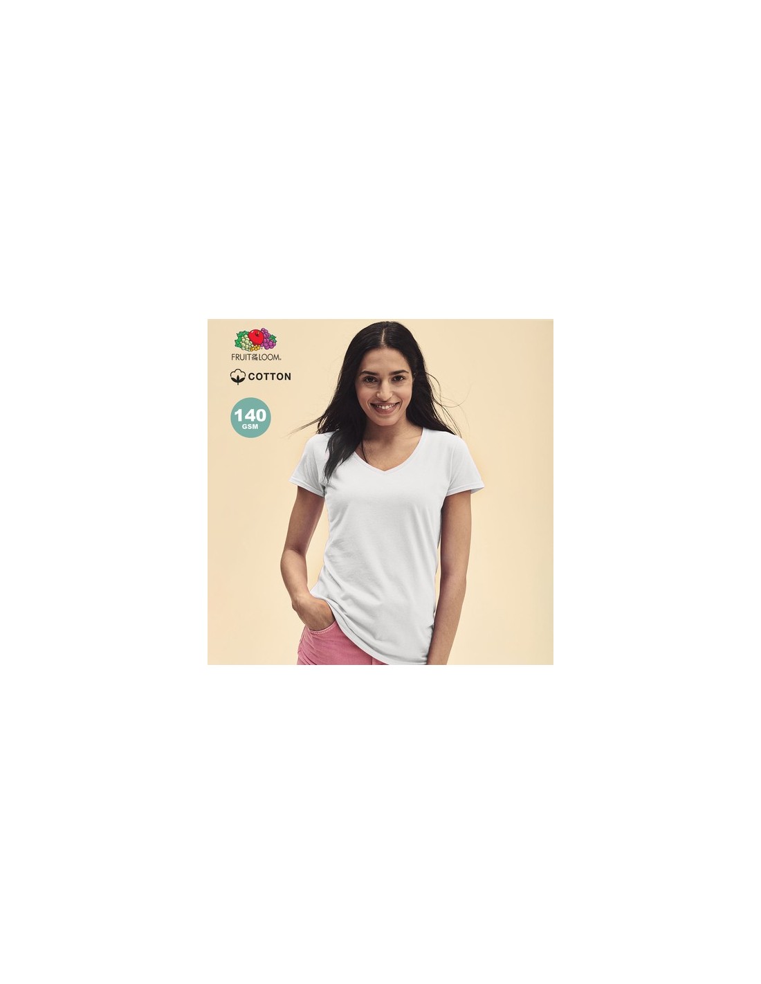 Camiseta para mujer blanca Iconic V-Neck de Fruit Of The Loom. Fabricada en material 100% algodón peinado Ring Spun de 140g/m2 hilado en anillo. De tacto suave y corte entallado, con costuras laterales diseñadas para un ajuste perfecto. Con cuello en pico estrecho de canalé 1x1 y tapeta a juego. Etiqueta fácilmente removible y disponible en tallas XS, S, M, L, XL, XXL. Composition : 100% Algodón Peinado Ring Spun 140 g/ m2.