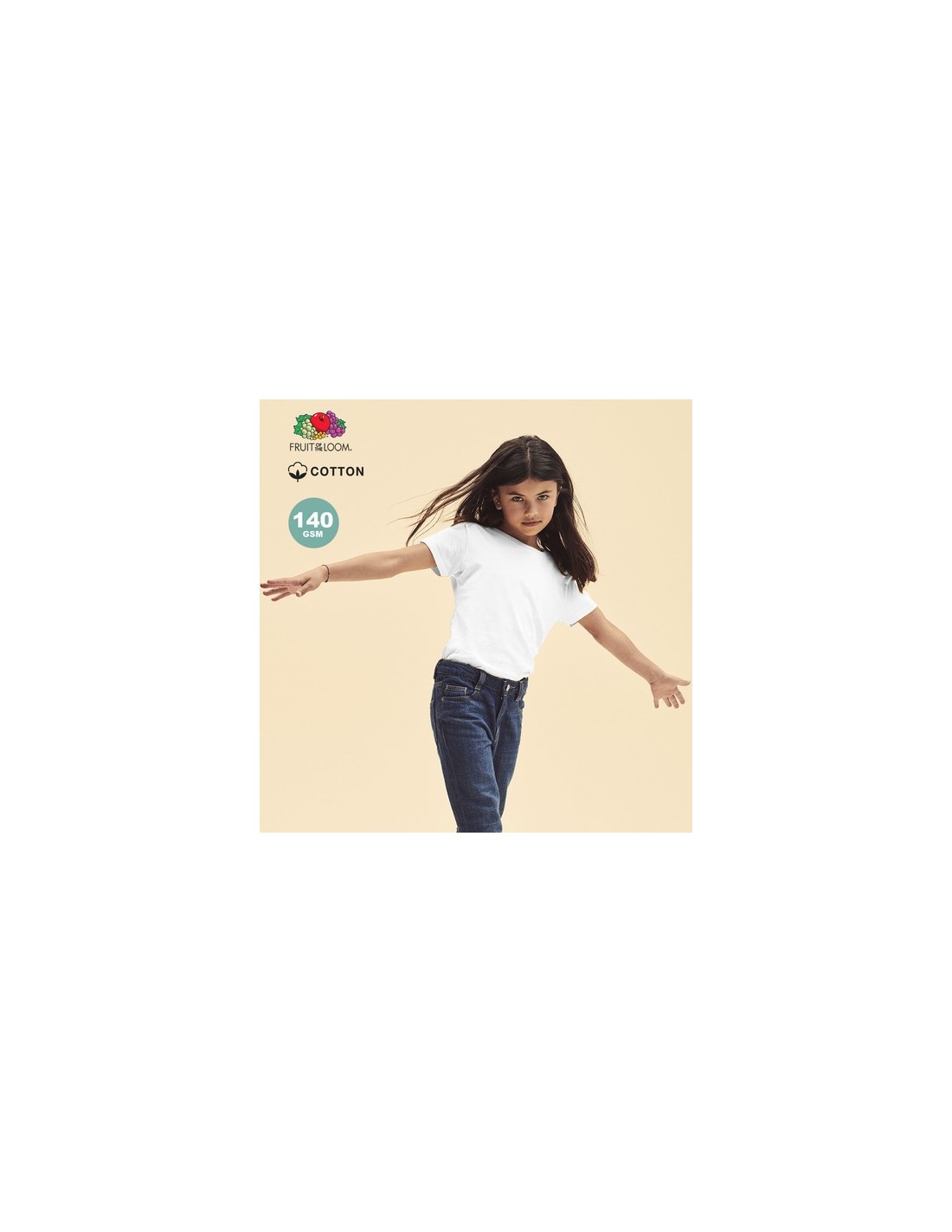 Camiseta para niña blanca Iconic de Fruit Of The Loom. Fabricada en material 100% algodón peinado Ring Spun de 140g/m2. De tacto suave y corte entallado, con costuras laterales diseñadas para un ajuste perfecto. Cuello redondo estrecho de canalé 1x1 y tapeta a juego. Etiqueta fácilmente removible y disponible en tallas 3-4, 5-6, 7-8, 9-11, 12-13, 14-15. Composition : 100% Algodón Peinado Ring Spun 140 g/ m2.