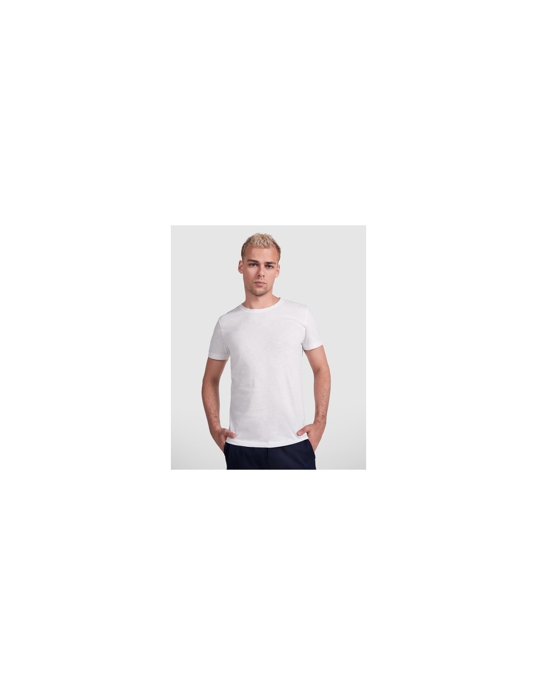 Camiseta de manga corta, en tejido vigoré inclinado. Cuello redondo del mismo tejido. Cubrecosturas interior a contraste de hombro a hombro. Costuras laterales remalladas de adorno. Bajo con aperturas laterales y el patronaje de la espalda es ligeramente más largo que el delantero. *Etiqueta removible. Composition : 100% algodón, 150 g/m².