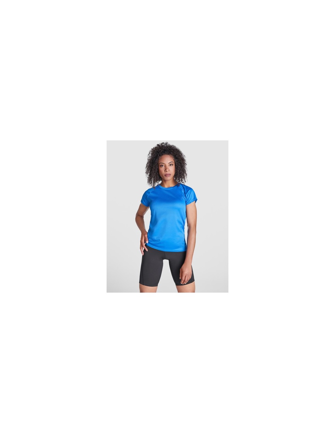Camiseta técnica entallada de manga corta ranglán para mujer, con cuello redondo y cubrecosturas a tono. Paneles inferiores en mangas. Remallado a tono en sisa y panel de manga. Tejido CONTROL DRY. * Certificado UV801* Etiqueta removible.* Tejido técnico.* Control dry. * Dúo concept. Composition : 100% poliéster, waffle interlock, 135 g/m².