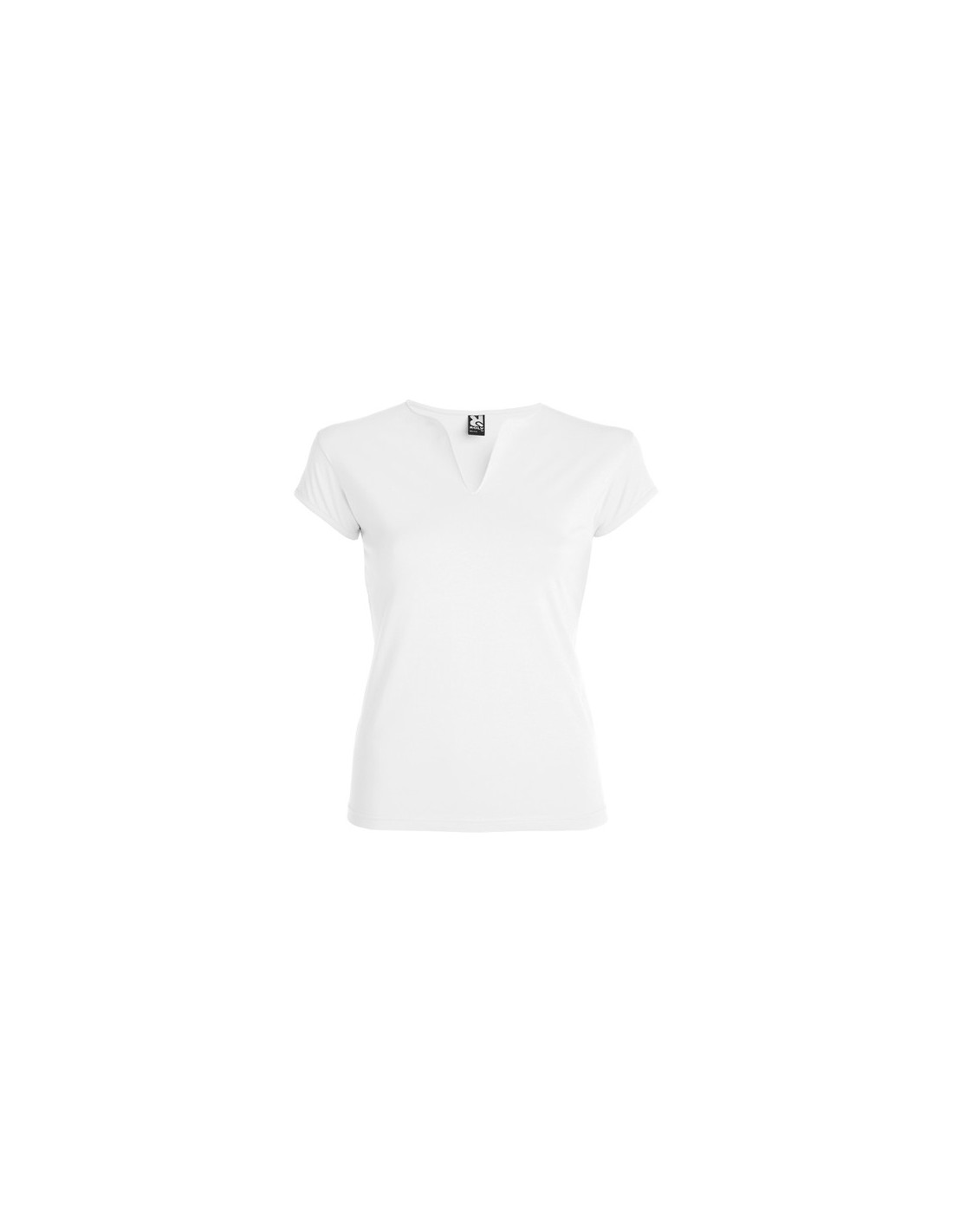 Camiseta entallada de cuello redondo con abertura en V, semi-manga al hombro ribeteada y costuras laterales. *Talla XXXL disponible en blanco 01 y negro 02.*Tejido con un acabado de alta calidad, que le proporciona un tacto único. *Etiqueta removible. Composition : 94% algodón peinado / 6% elastano, punto liso, 200 g/m².