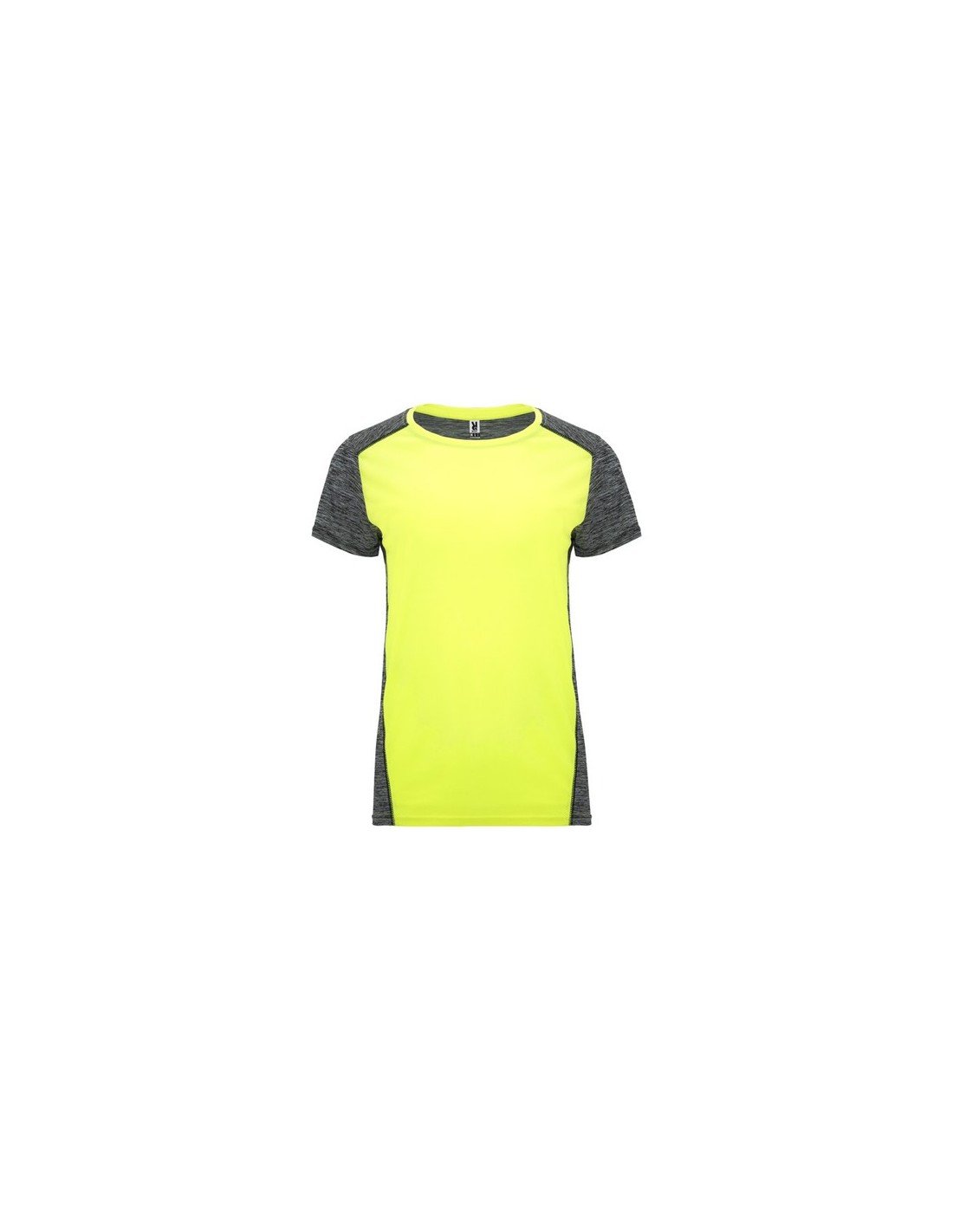 Camiseta técnica de manga corta para mujer, con cuello redondo. Combinado en espalda, hombros y mangas con dos tejidos de poliéster. Tejido principal frontal bird´s eye y tejido space dye en la parte trasera. Patronaje en la espalda ligeramente mas largo. Modelo transpirable y de fácil secado. *Etiqueta removible.*Tejido técnico.*Modelo transpirable. *Dúo concept. Composition : Tejido delantero: 100% poliéster bird´s eye. Tejido trasero: 100% poliéster space dye, 135 g/m².