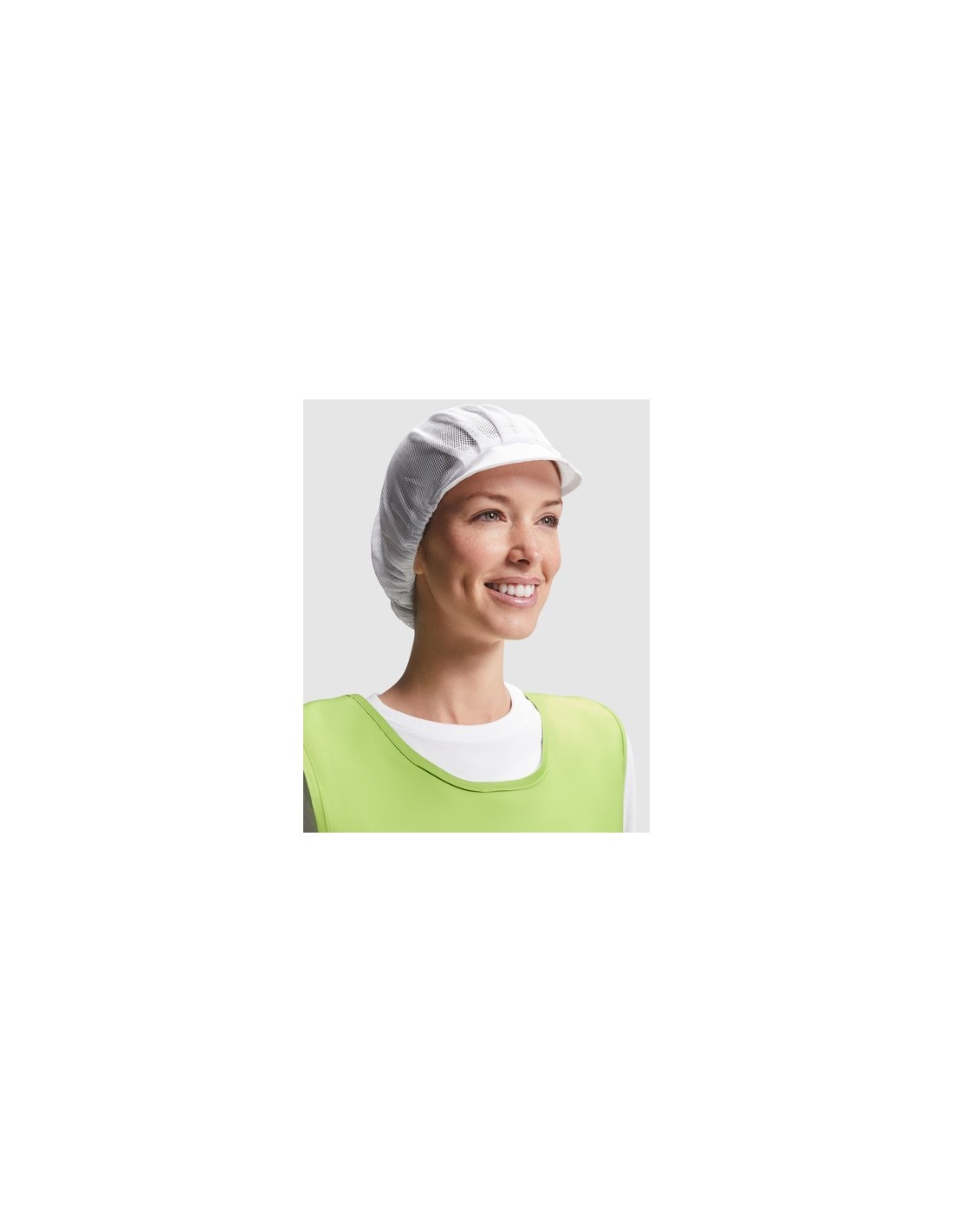 Cofia con rejilla recoge pelo y visera corta rígida. · Plisado en la parte frontal. · Rejilla transpirable con elástico adaptable en la zona posterior. * Etiqueta removible. Composition : Tejido visera: 65% poliéster / 35% algodón, 200 g/m².Tejido rejilla: 100% poliéster, 70 g/m² .