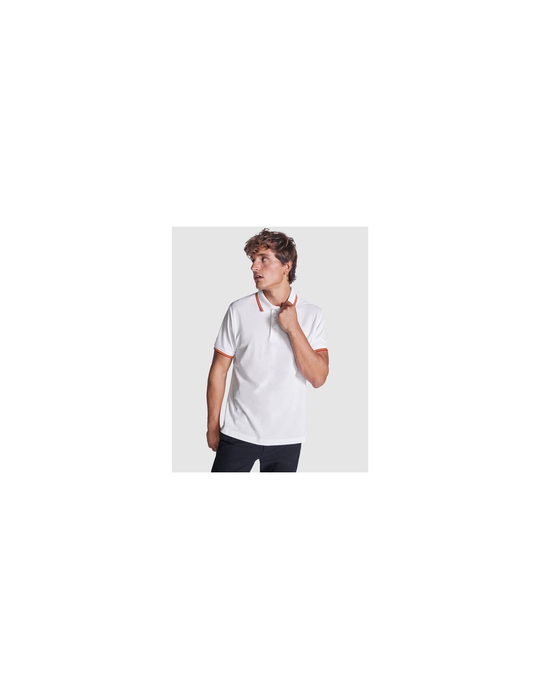 Polo de manga corta, cuello y bocamangas jackard con tapeta de tres botones. Cubrecosturas reforzado en cuello. Adorno de bandera bordado en la espalda. *Bolsillo opcional. *Etiqueta removible.*Tratamiento ANTI-PILLING. Composition : 60% algodón/ 40% poliéster, punto piqué.Blanco: 210 g/m². Color: 190 g/m².